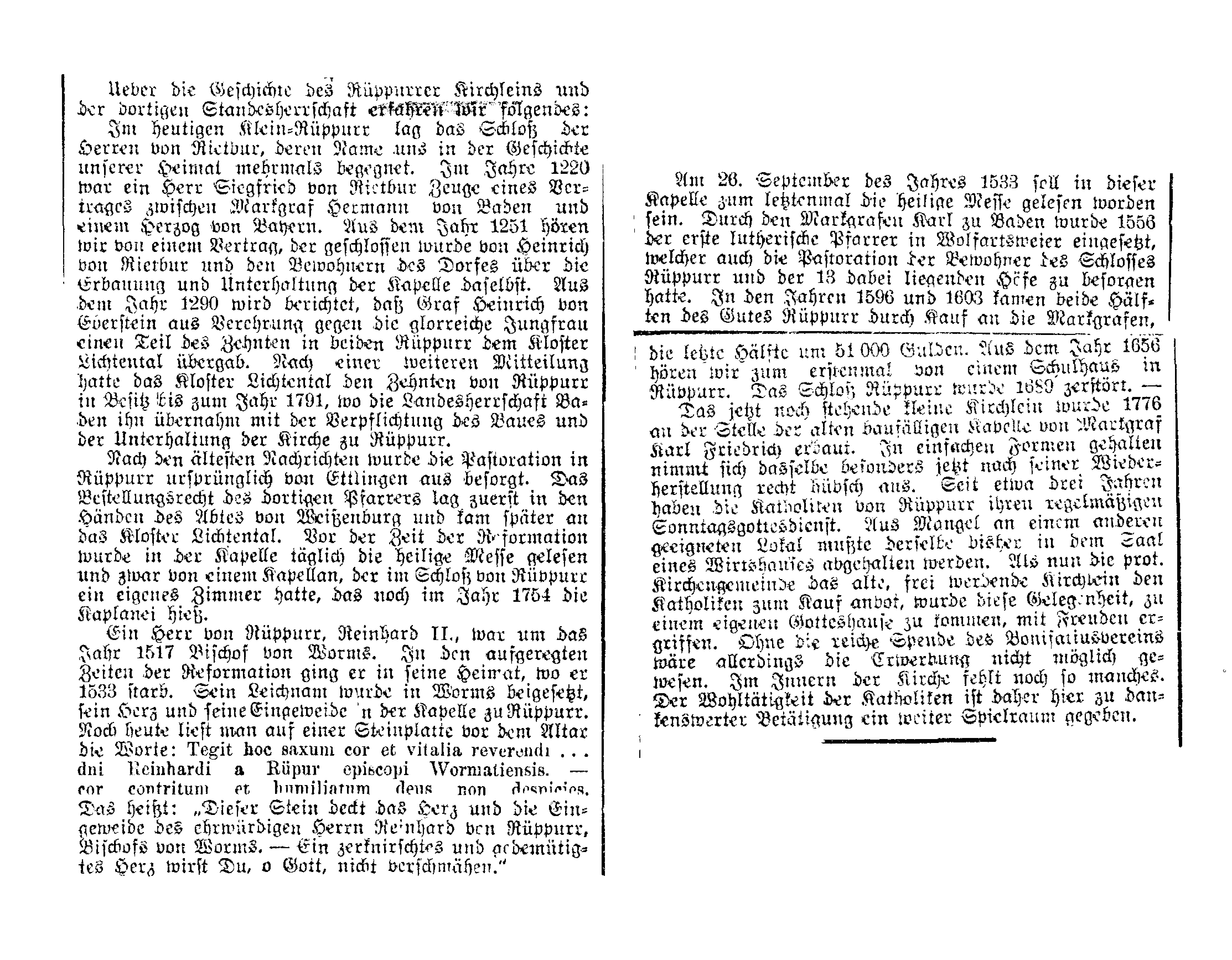 | Ueber die Geschichte des Rüppurrer Kirchleins und | |||