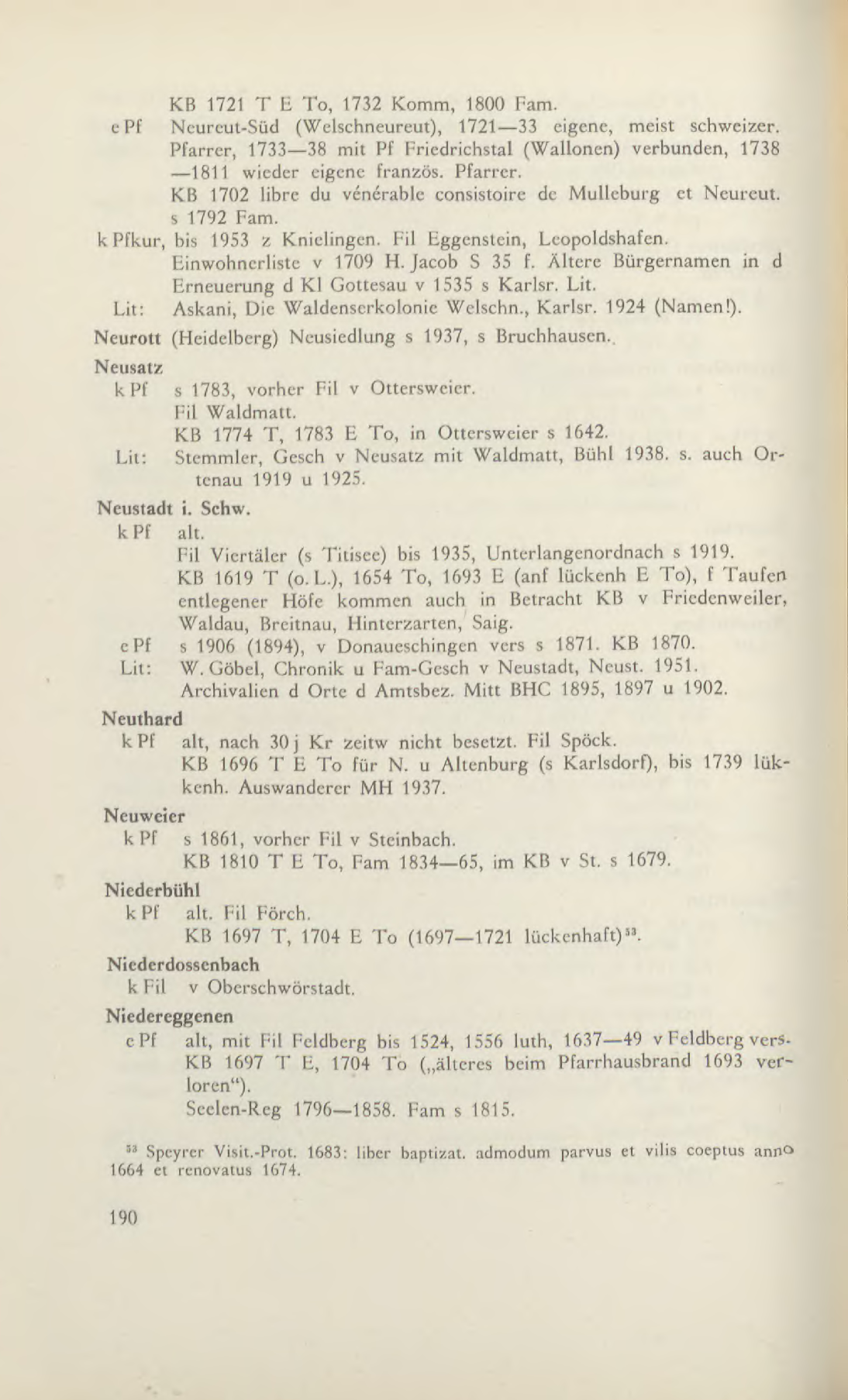 Kil 1774 T, 17H3 E To, in Ottersweier s 1642. Lit: Stemmler, Gesch v Neusatz mit Waldmatt, Bühl 1938. s. auch Or- lenau 1919 u 1925. Neustadt i. Schw.