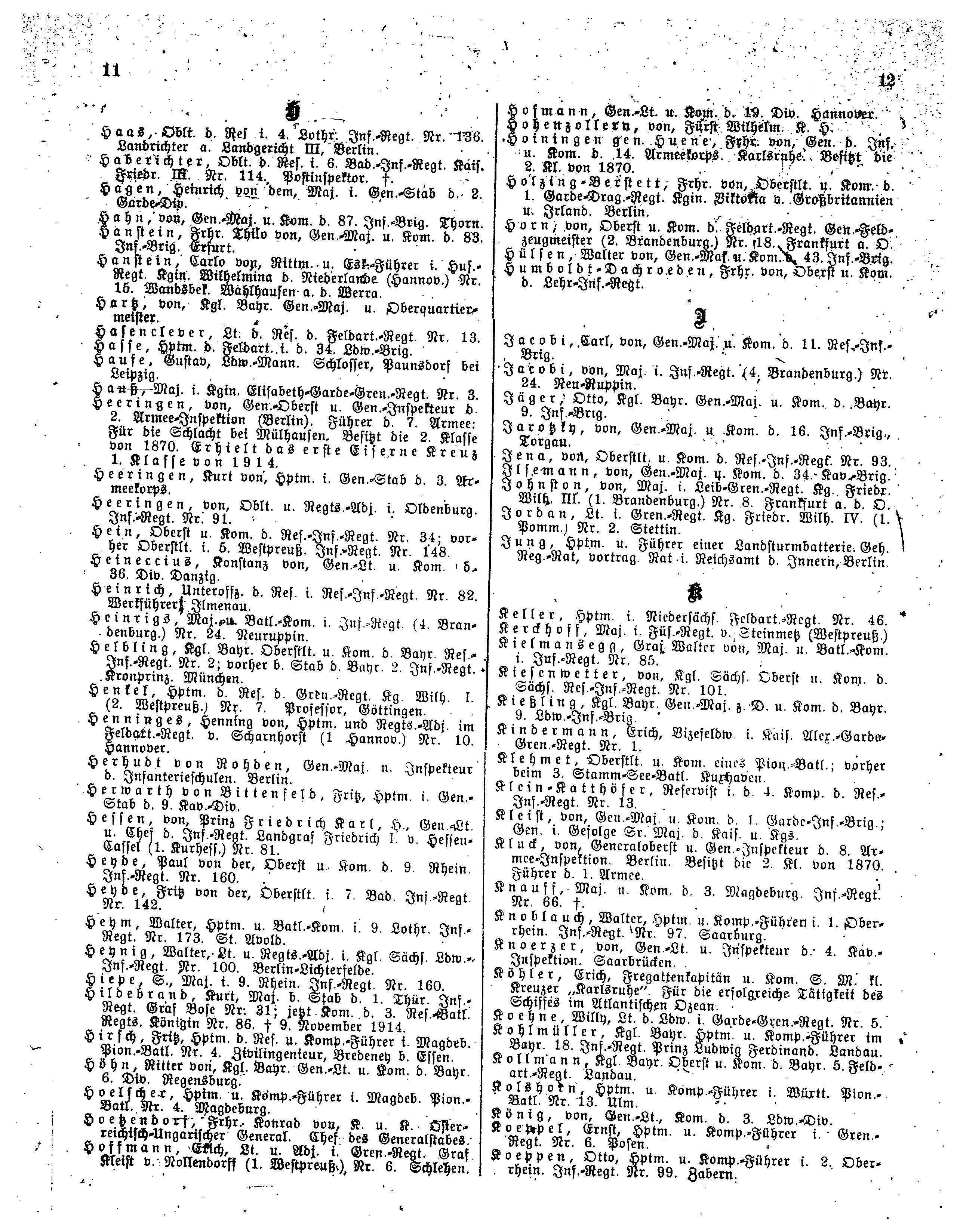 | | | ''Jacobi'', Carl von, Gen.-Maj. u. Kom. d. 11. Res.-Inf.-Brig. | ||