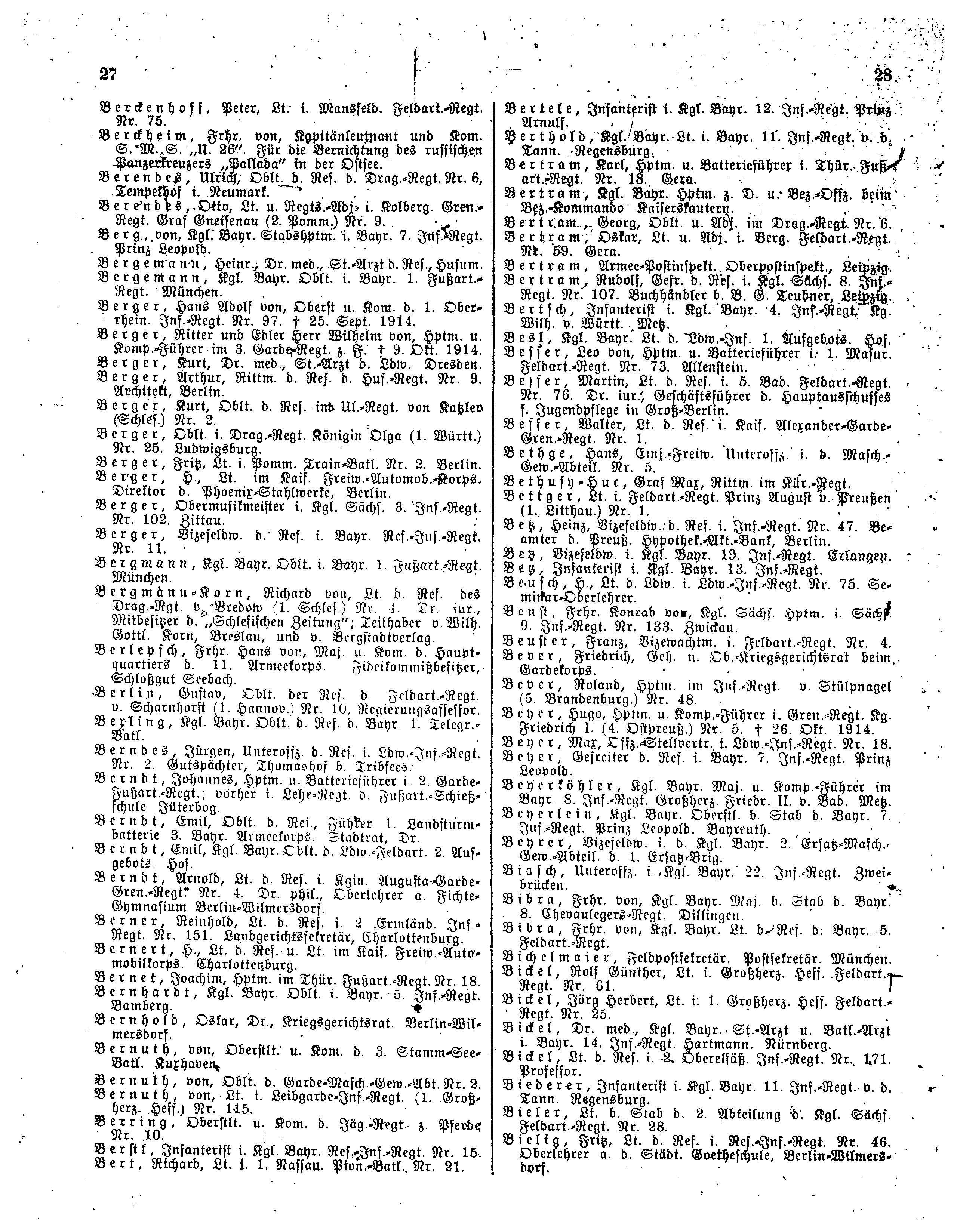 | ''Amelung'', Fritz, Lt. d. Res. d. Gren.-Regt.Nr. 12. Prinz Carl von Preußen (2. Brandenburgisches), Ober-Ing. Siemens-Schuckertwerke, Charlottenburg.