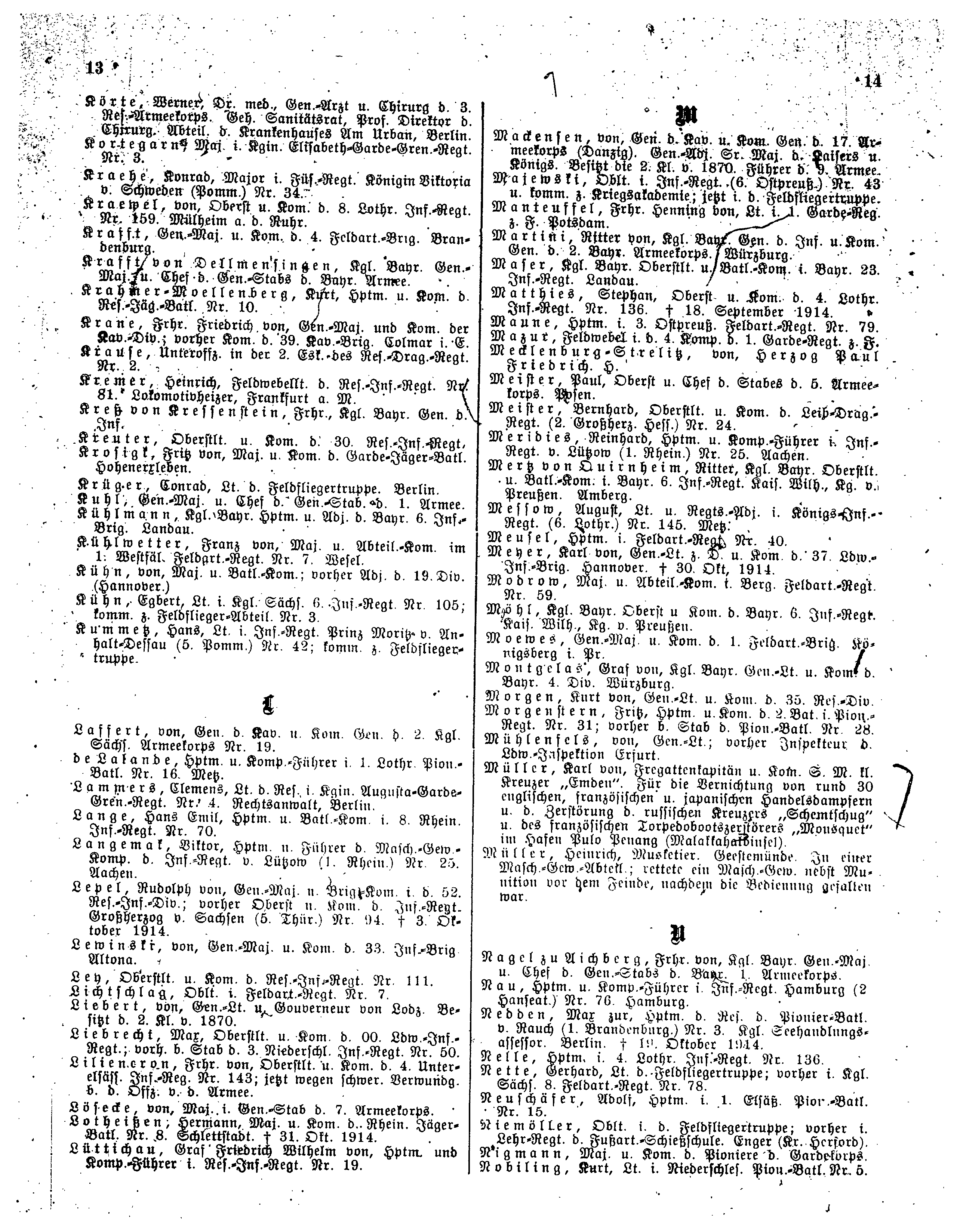 | ''Matthies'', Stephan, Oberst u. Kom. d. 4. Lothr. Inf.-Regt. Nr. 136. † 18. September 1914. | |||