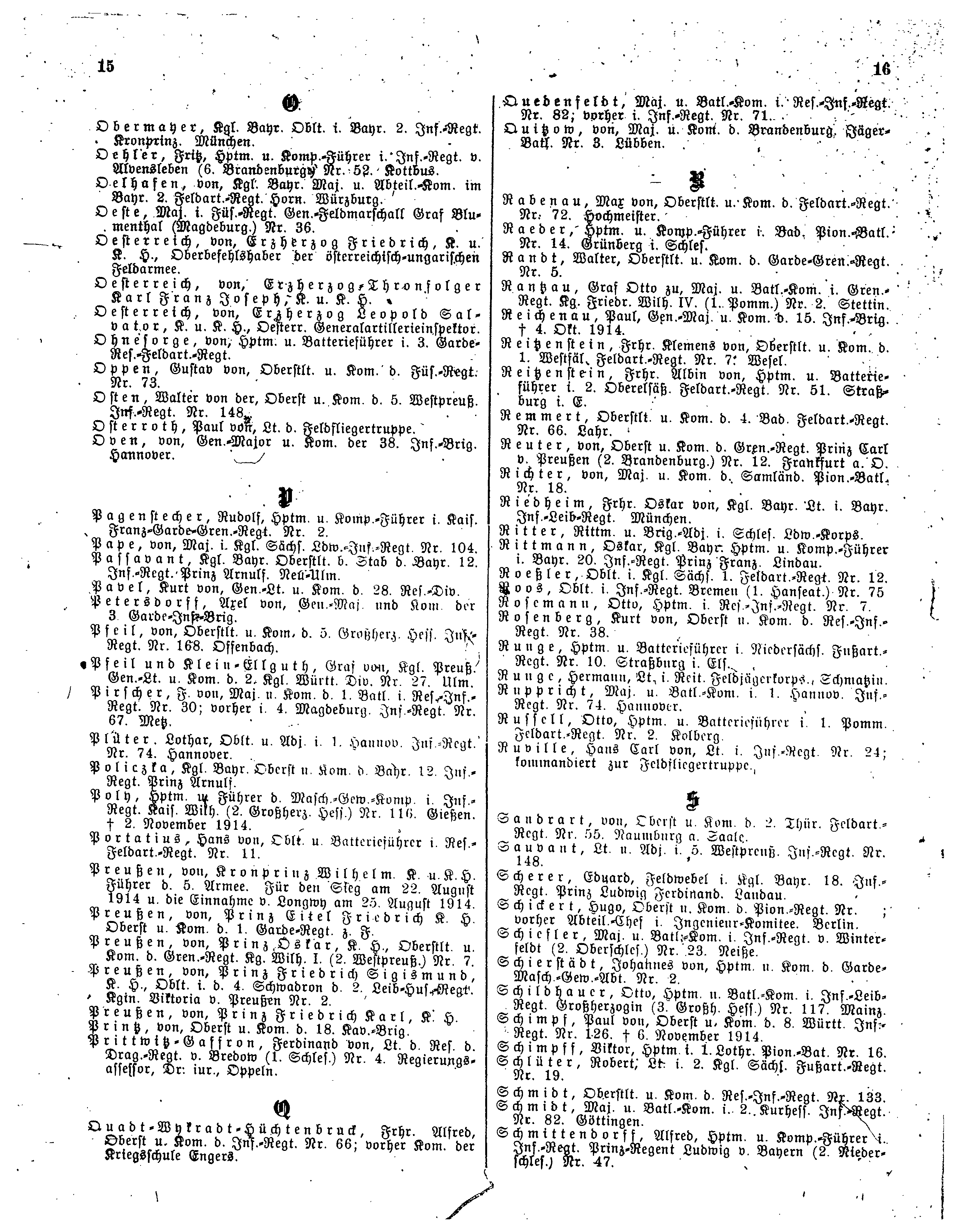 | ''Reichenau'', Paul, Gen.-Maj. u. Kom. d. 15. Inf.-Brig. † 4. Okt. 1914. | |||