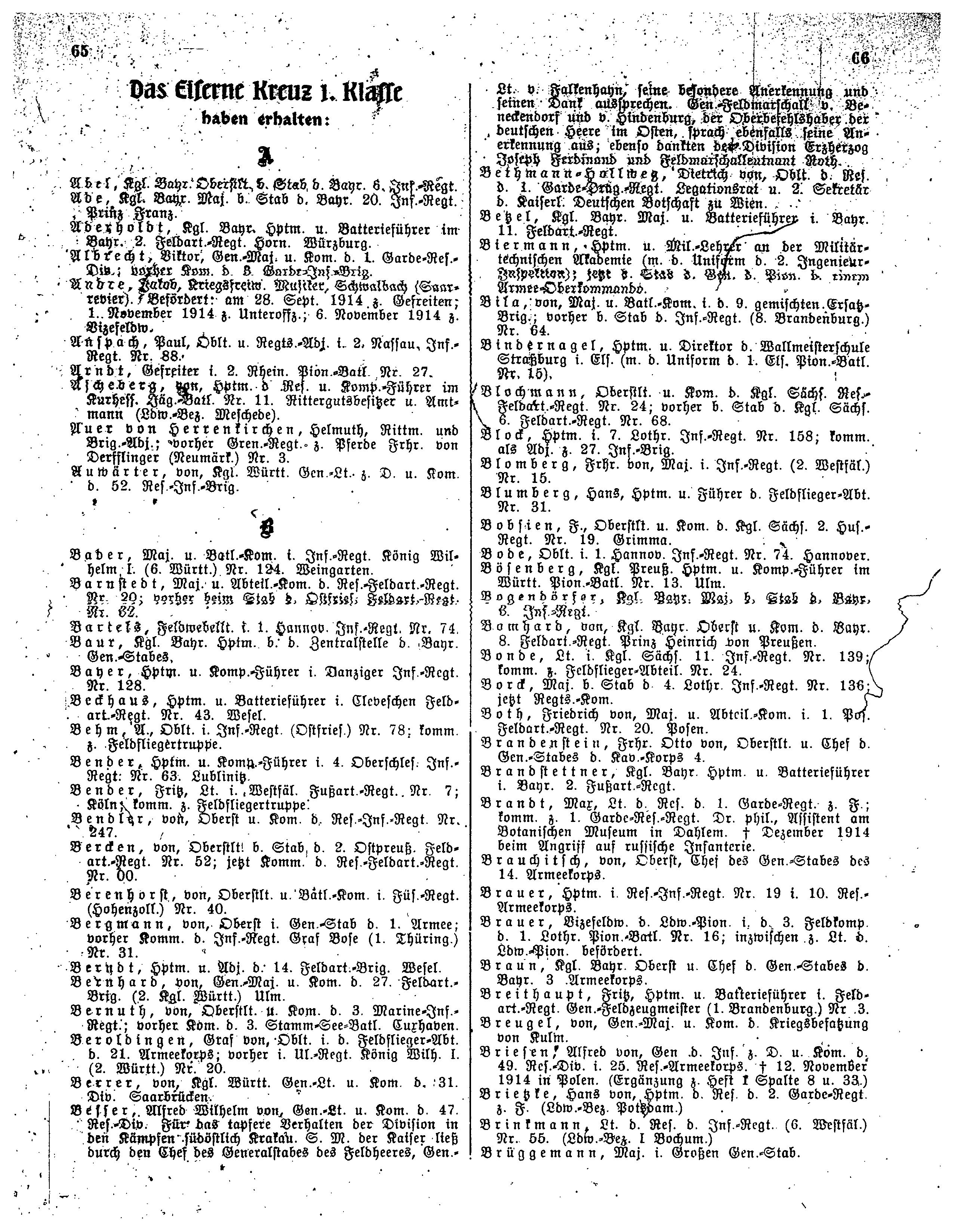 | | | ''Bayer'', Hptm. u. Komp.-Führer i. Danziger Inf.-REgt. Nr. 128. | ||