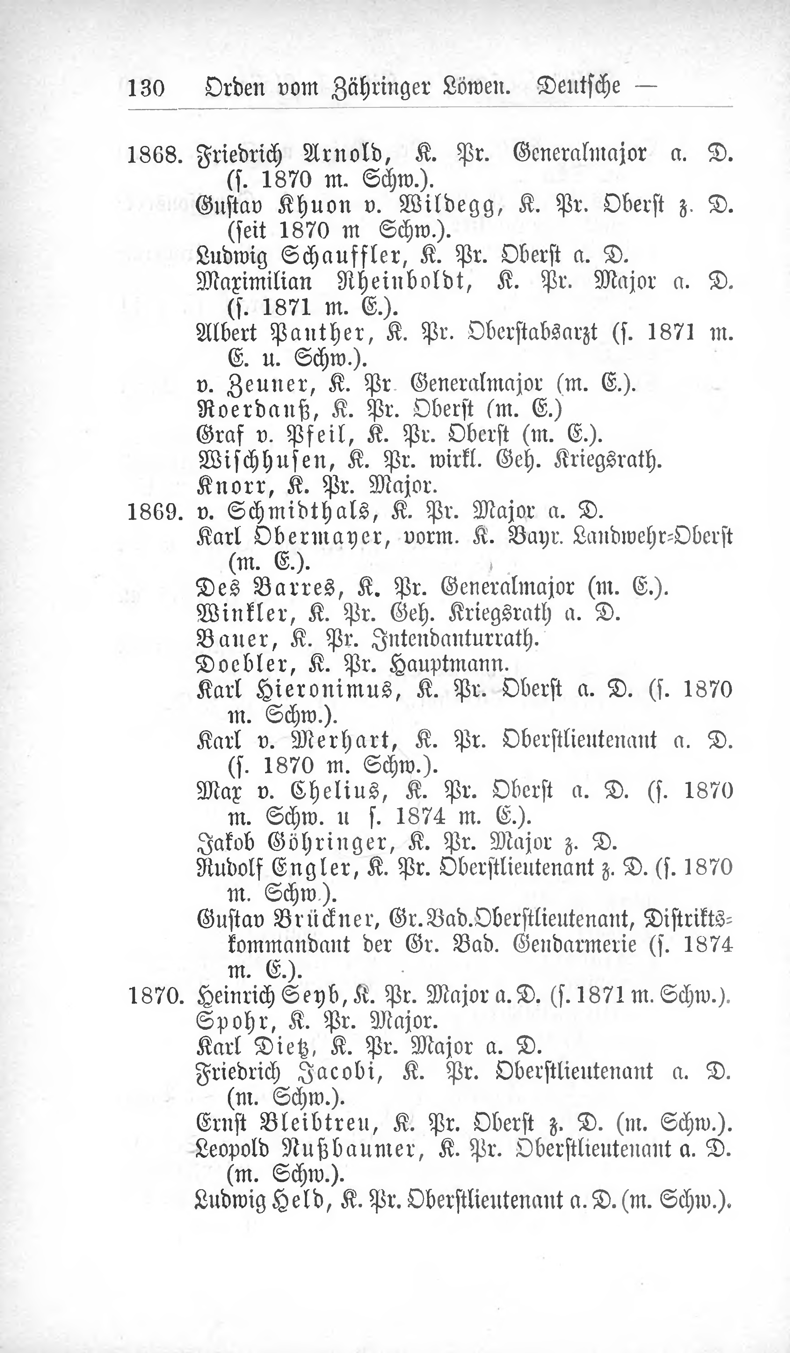 - Heinrich Seyb, K. Pr. Major a. D. (s. 1871 m. Schw.).