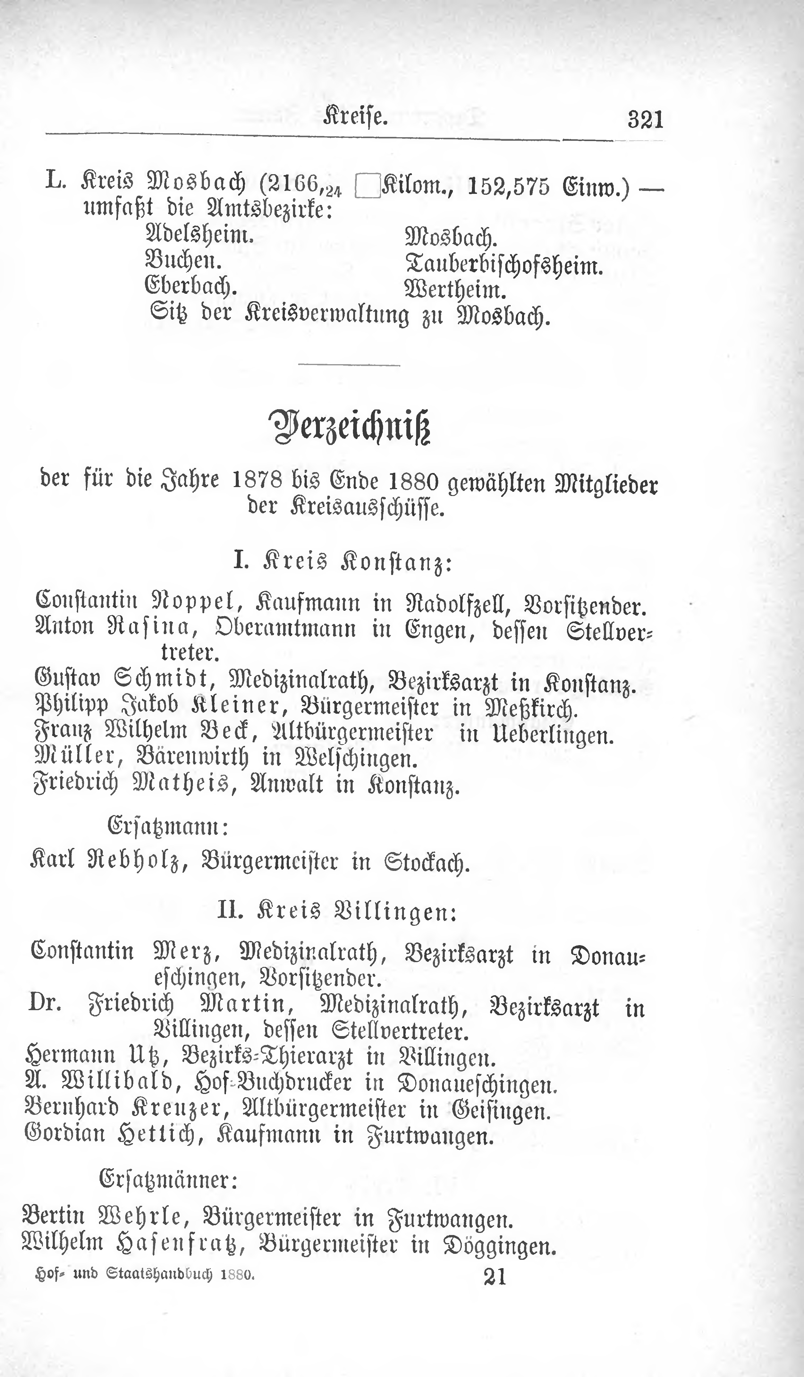 der für die Jahre 1878 bis Ende 1880 gewählten Mitglieder der Kreisausschüsse.