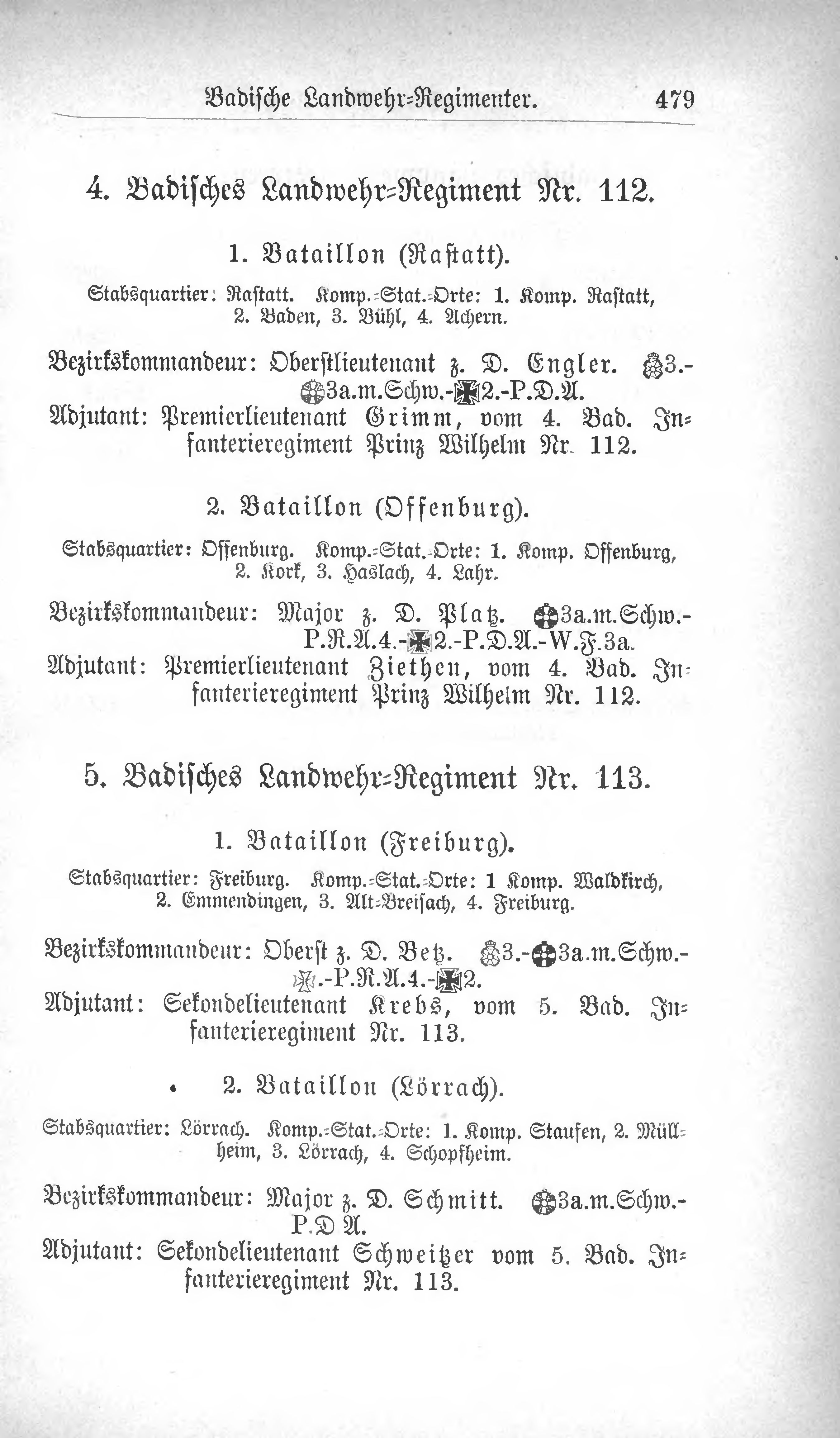 Adjutant: Premierlieutenant ''Grimm'', vom 4. Bad. Infanterieregiment Prinz Wilhelm Nr. 112. | |||