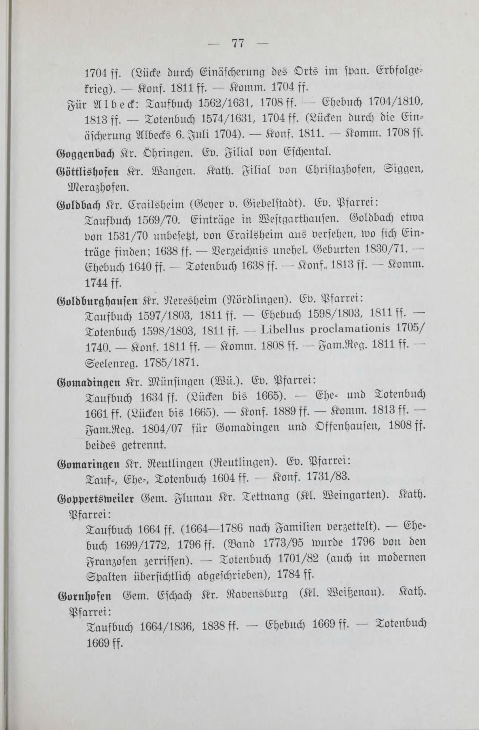 Verzeichnis der württembergischen Kirchenbücher (1938)/77: Unterschied zwischen den Versionen