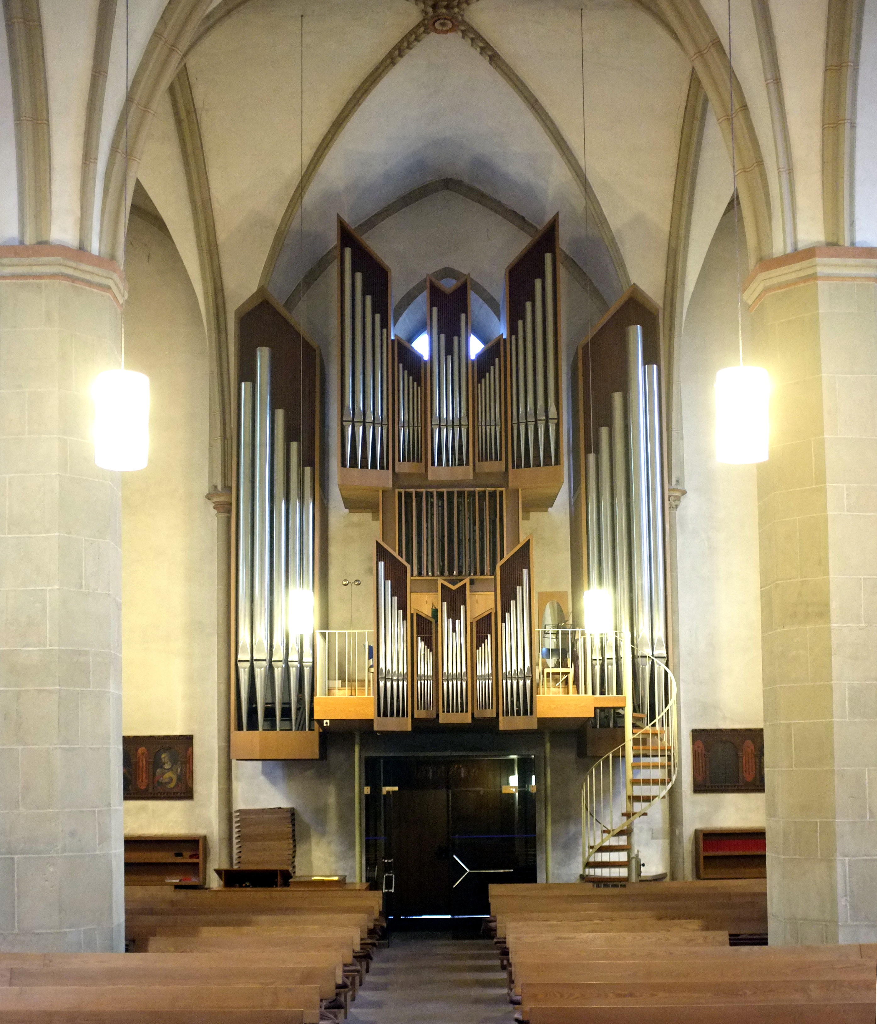 Die 1974 von der Firma Gustav Steinmann hergestellte Orgel in der Stiftskirche zu Enger | ||||
