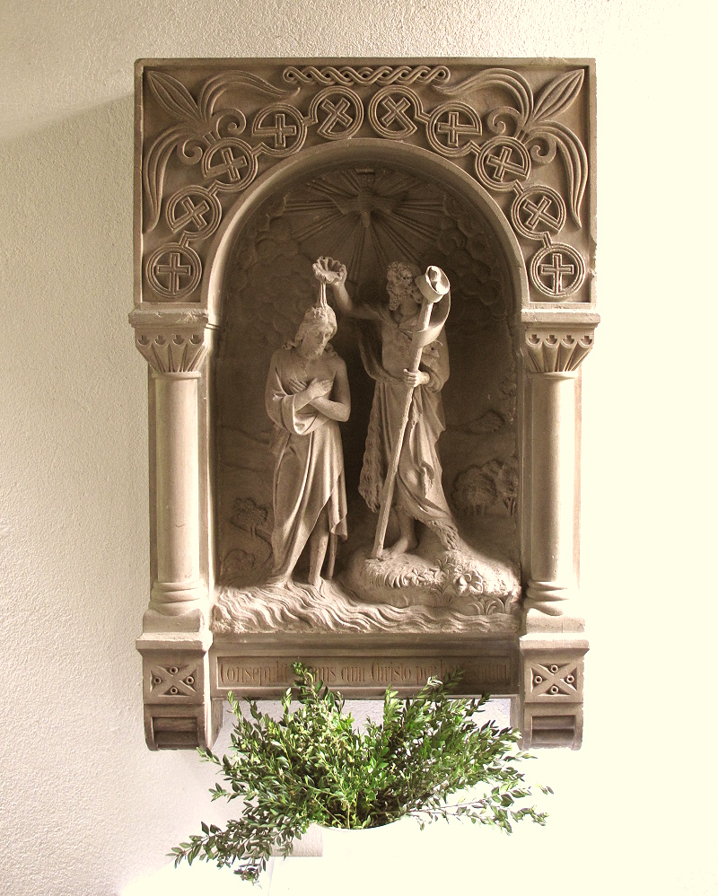 Sandsteinreliefplatte mit der Darstllung der Taufe Jesu durch Johannes im Jordan
