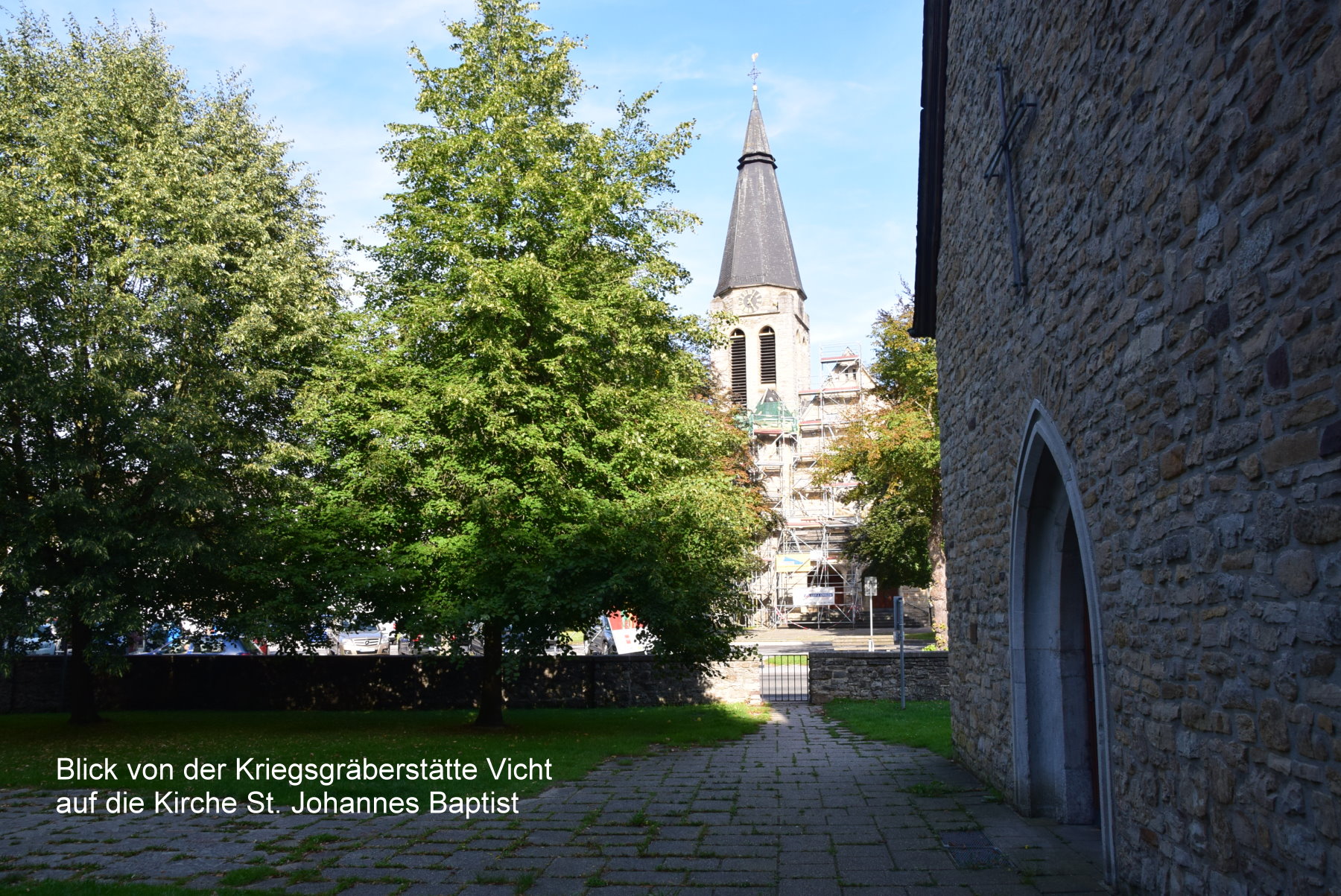 ({{Information |Beschreibung =Blick vom Ehrenfriedhof auf die kath. Kirche St. Johannes Baptist in Vicht |Quelle = selbst fotografiert |Urheber = K. Erdmann |Datum = August 2019 |Scans = |Genehmigung = {{self|Cc)