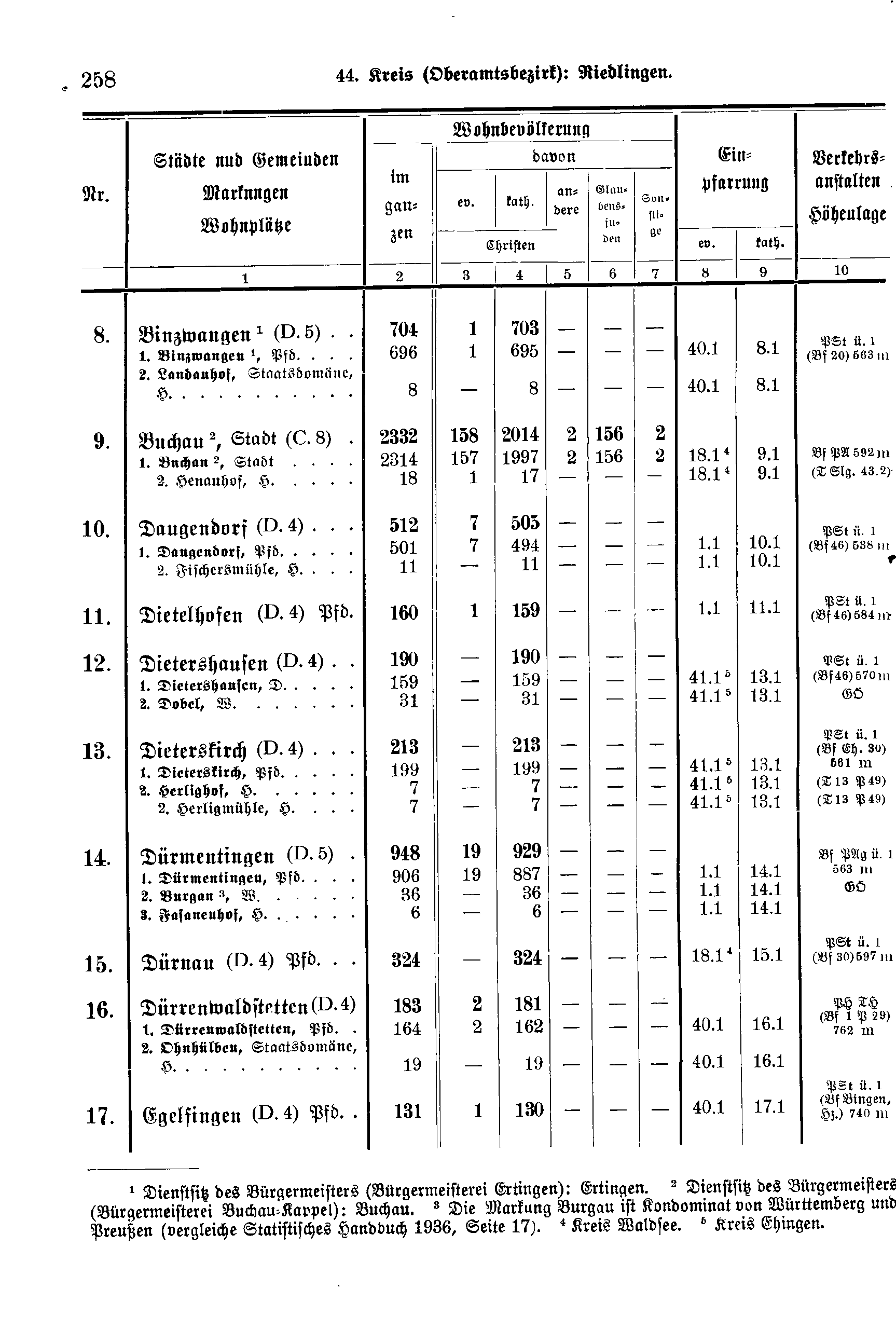 - ↑ Die Markung Burgau ist Kondominat von Württemberg und Preußen (vergleiche Statistisches Handbuch 1936, Seite 17).