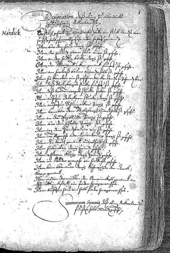 [[Bild: Haddick-Pertinenz.jpg|thumb|545px|1628 Hardick: Designation der Pertinenzien.]] | [[Bild: Haddick-Pertinenz.jpg|thumb|545px|1628 Hardick: Designation der Pertinenzien.]] | ||