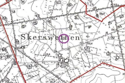 [[image:Friedhof Skerswethen MTB0796.jpg|thumb|left|430px|Lage des Friedhofs von Skerswethen im Messtischblatt]] | |||