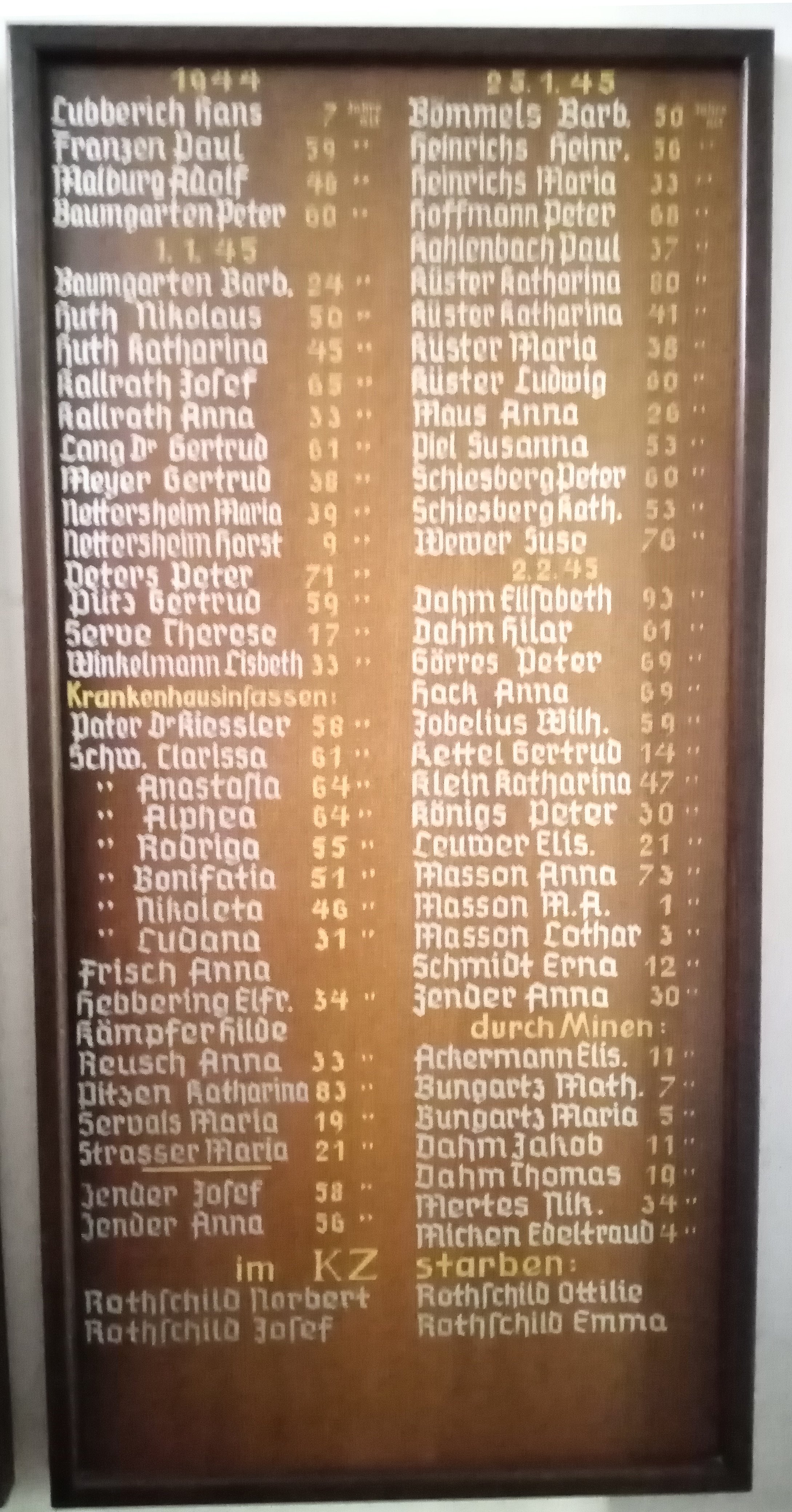 | aktuell | 12:54, 19. Sep. 2019 | 2.178 × 4.154 (1,65 MB) | KlausErdmann (Diskussion • Beiträge) | {{Information |Beschreibung = ;Gedenktafel für die Opfer des II. Weltkriege in der kath. Kirche in Stadtkyll |Quelle = eigenes Foto |Urheber = K. Erdmann |Datum = 18.Sept. 2019 |Scans = |Genehmigung = {{s |