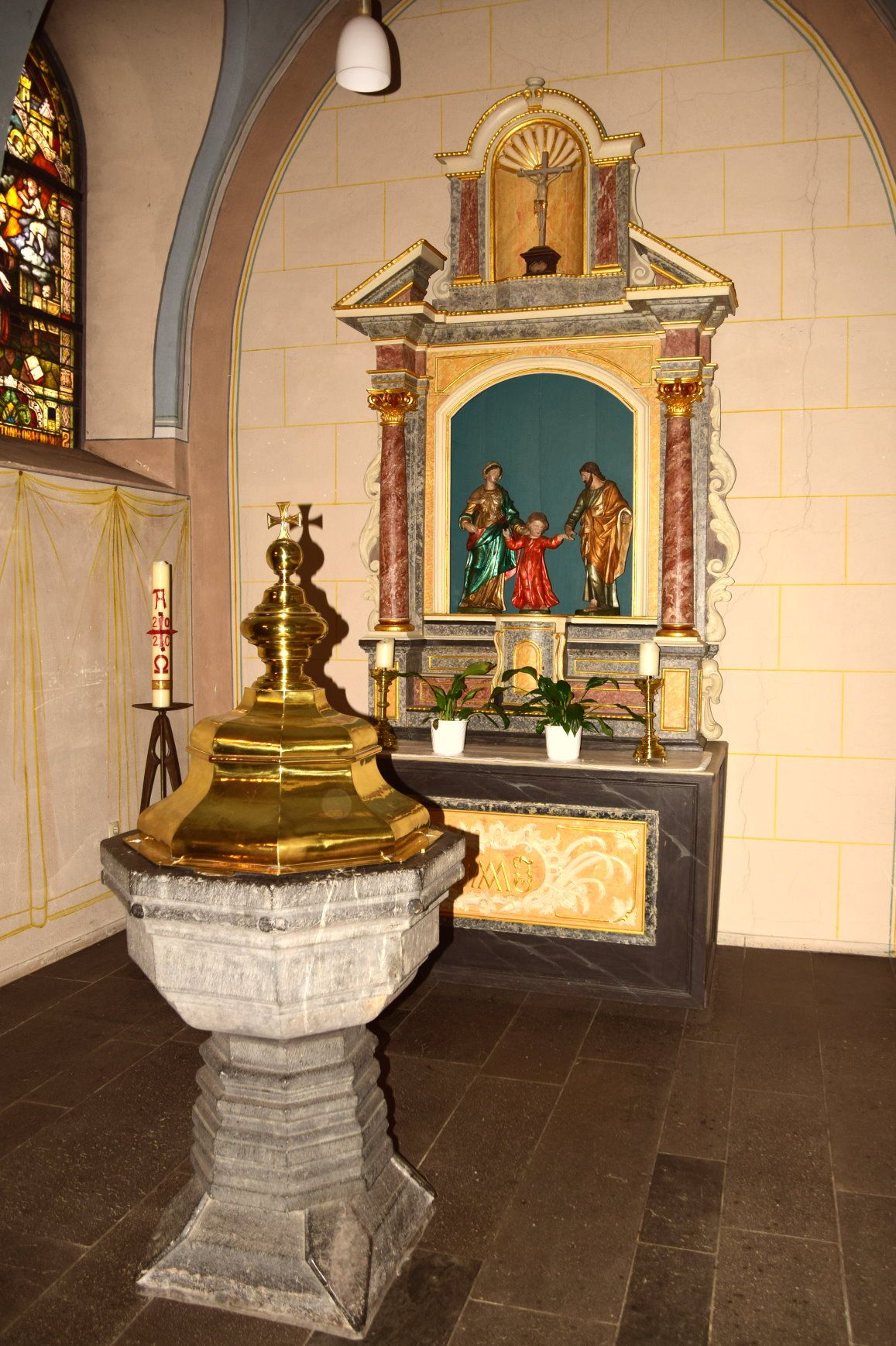 |Beschreibung = ;Das Taufbecken am linken Seitenaltar der St. Petruskirche in [[ | |Beschreibung = ;Das Taufbecken am linken Seitenaltar der St. Petruskirche in [[Gladbach (Vettweiß)|Gladbach (Vettweiß)]] | ||