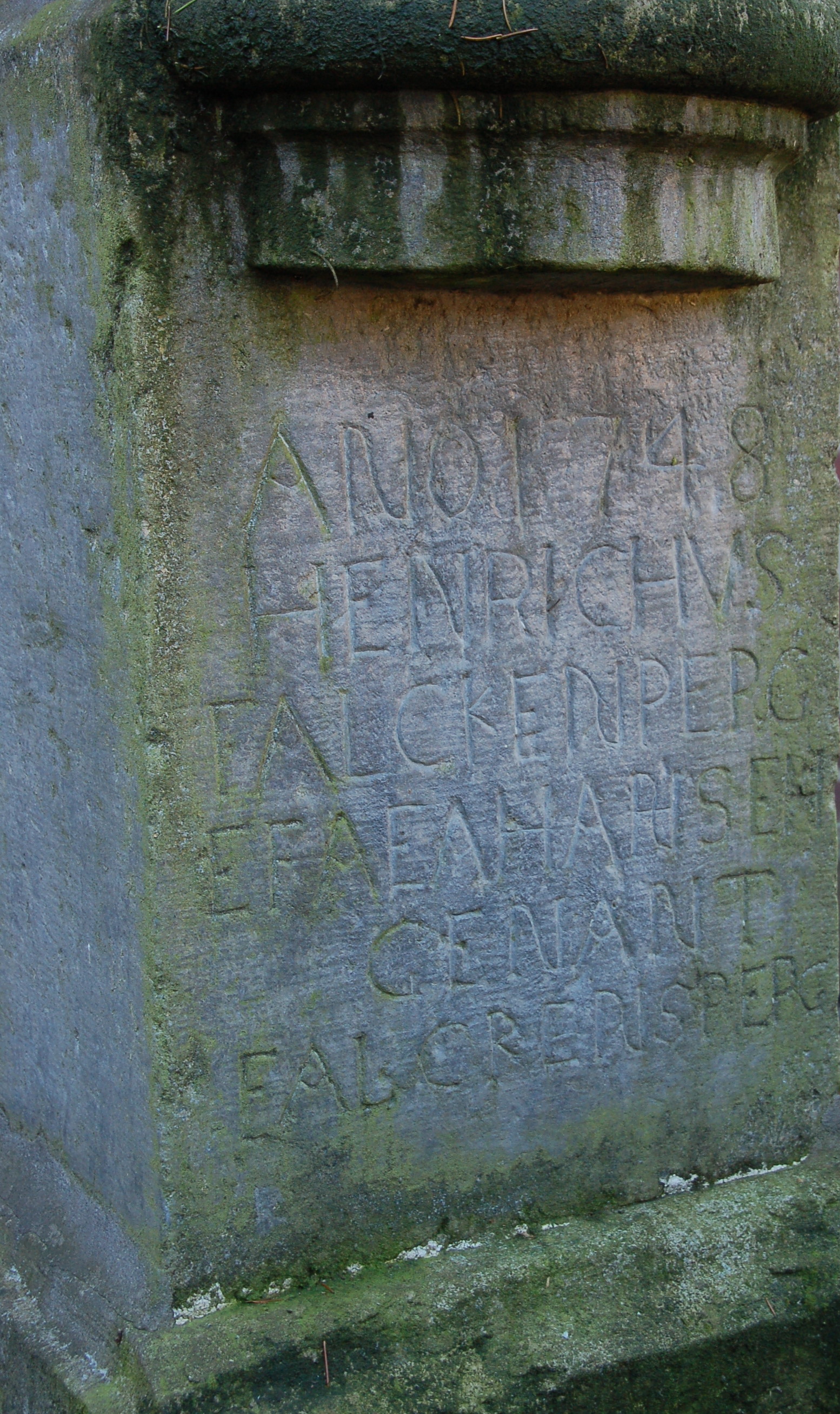 |Beschreibung = Sockelinschrift des Wegekreuzes an der Hellbüchelstraße in [[ | |Beschreibung = Sockelinschrift des Wegekreuzes an der Hellbüchelstraße in [[Dormagen|Dormagen]] | ||