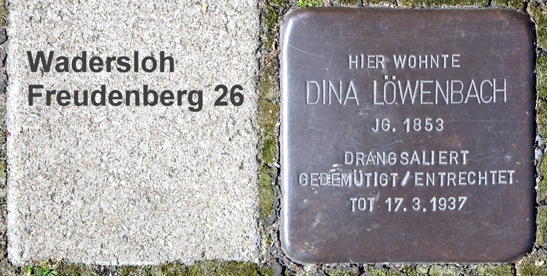 |Beschreibung = Stolperstein zur Erinnerung an die jüdische Einwohnerin '''Dina Löwenbach''' <br />in [[ | |Beschreibung = Stolperstein zur Erinnerung an die jüdische Einwohnerin '''Dina Löwenbach''' <br />in [[Wadersloh|'''Wadersloh''']], Freudenberg 26 | ||