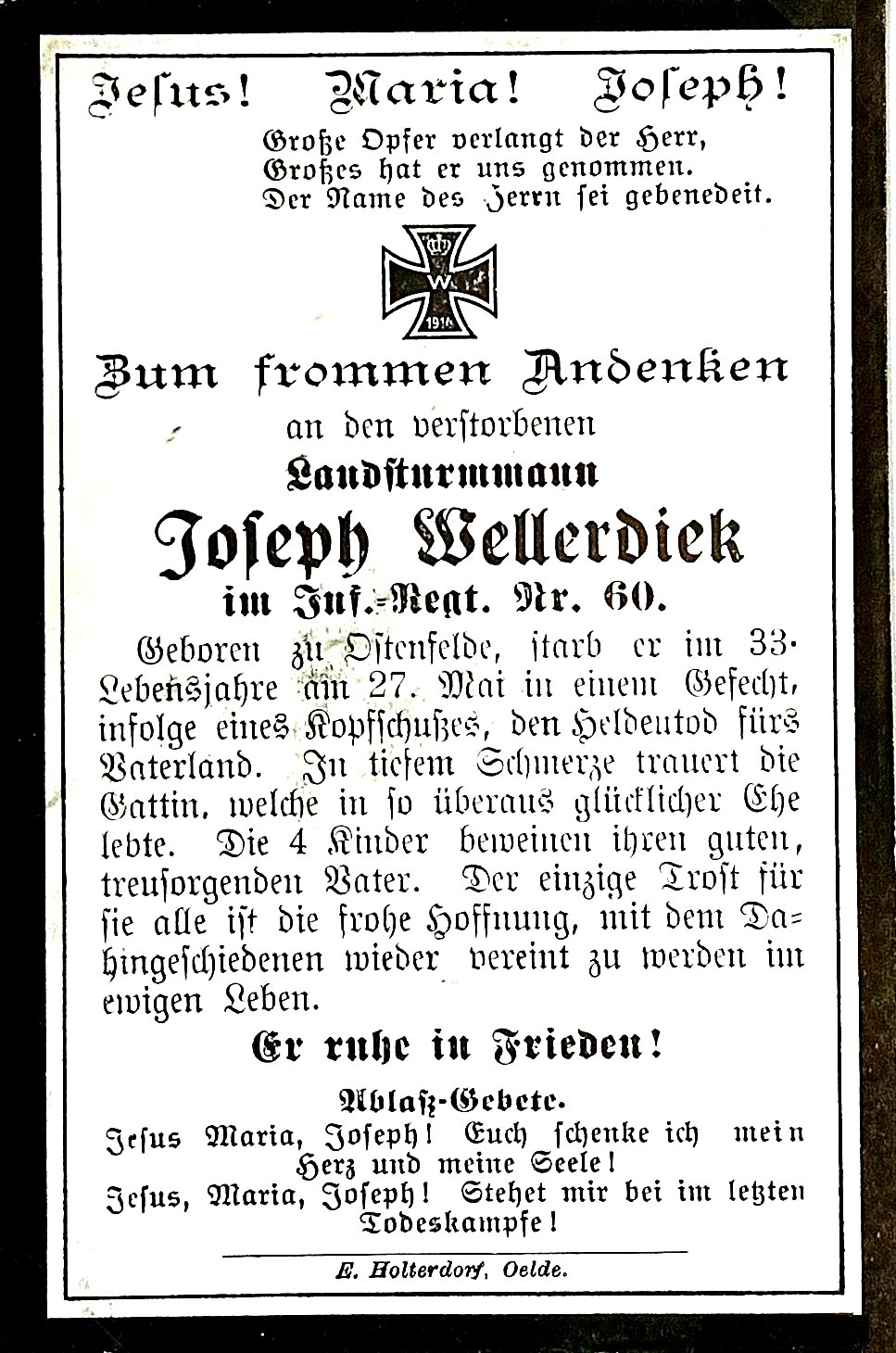 |Beschreibung = ;Totenzettel des Landsturmmannes Joseph Wellerdiek aus [[ | |Beschreibung = ;Totenzettel des Landsturmmannes Joseph Wellerdiek aus [[Ostenfelde|Ostenfelde]] | ||