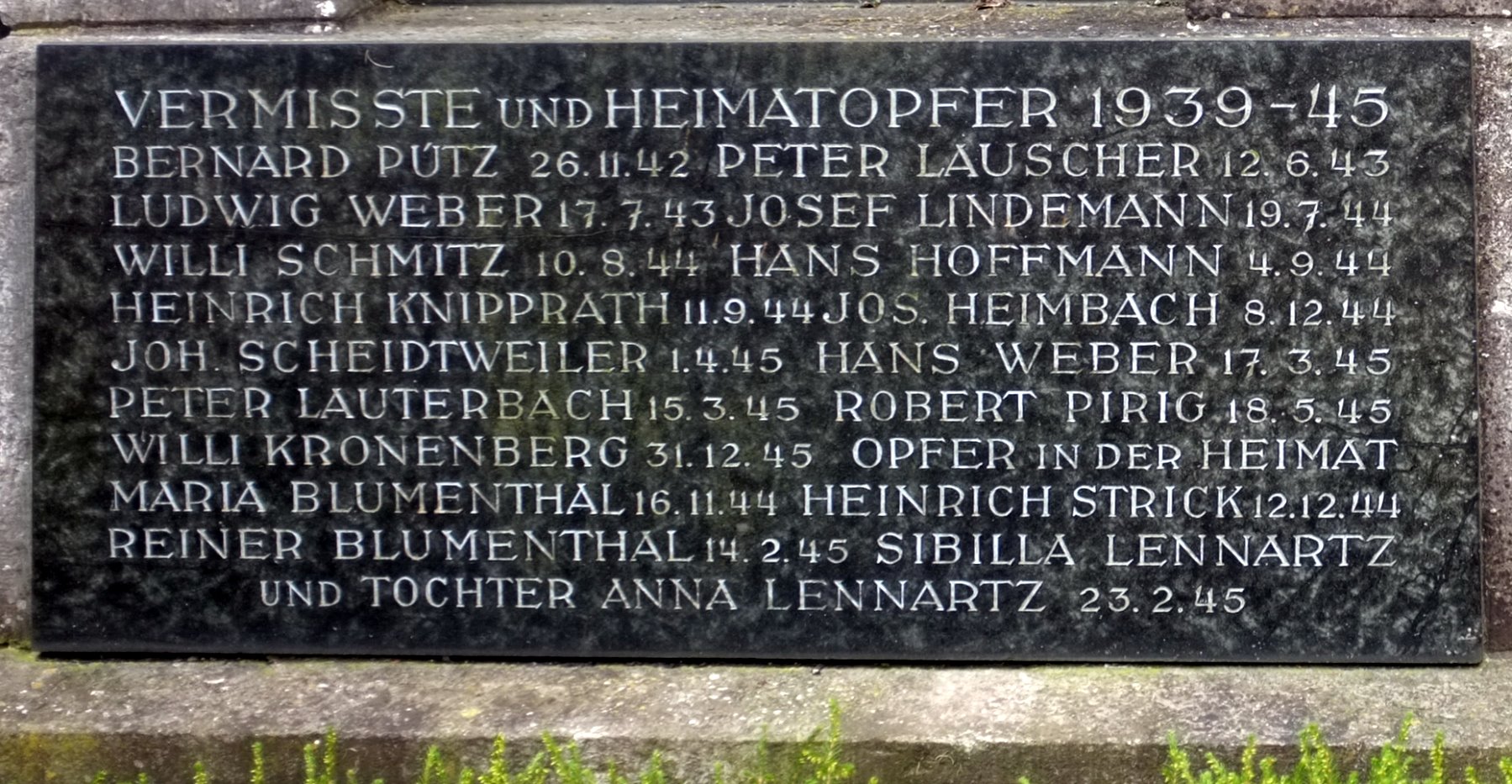 mittlere Tafel unten mit den Namen der Vermißten und Heimatopfern des II. Weltkrieges 1939-45 | ||||