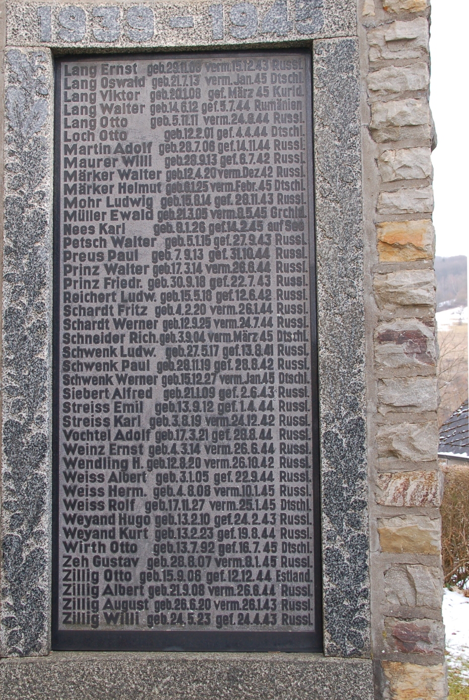 Gedenktafel für die Opfer des II.Weltkrieges 1939-1945 am Ehrenmal in Niederwörresbach | ||||