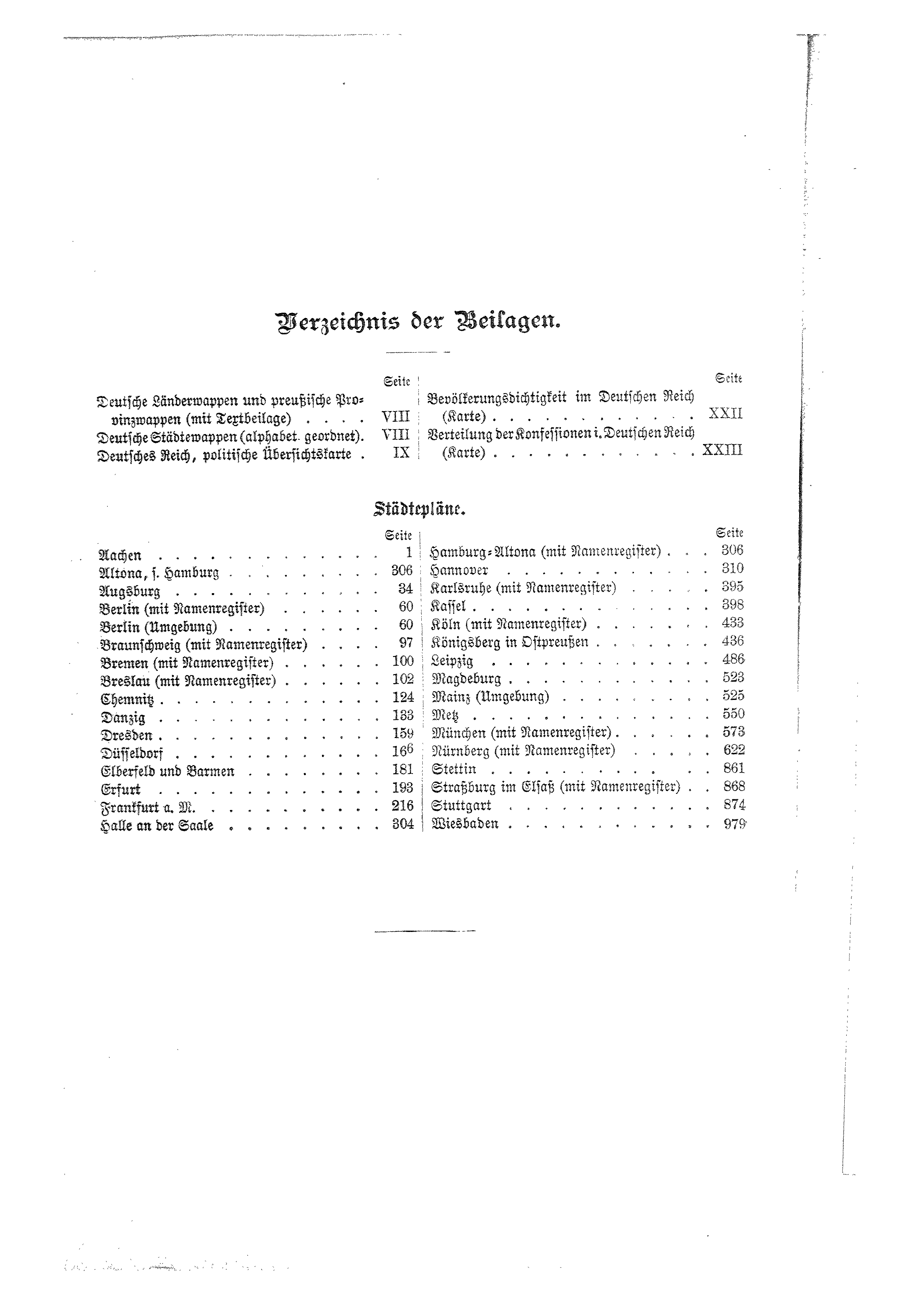 Bevölkerungsdichte im Deutschen Reiche (Karte) . . . XXII | * Bevölkerungsdichte im Deutschen Reiche (Karte) . . . XXII | ||