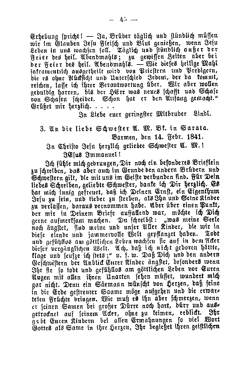 :3. <tt>An die liebe Schwester A. M. Vk. in Sarata.</tt> | |||