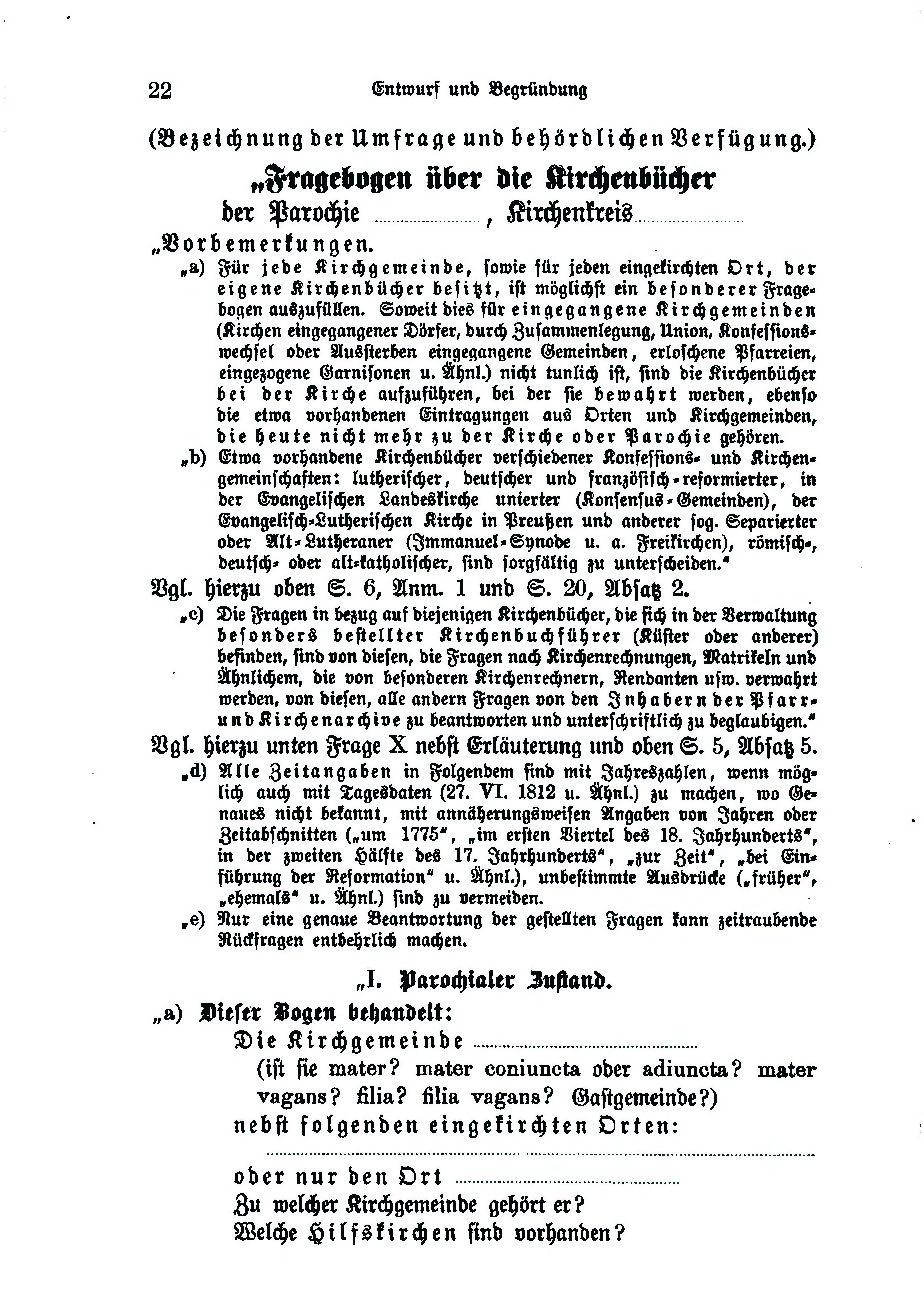 „s) Nur eine genaue Beantwortung der gestellten Fragen kann zeitraubende :Rückfragen entbehrlich machen. „I. Parochialer Zustand. „