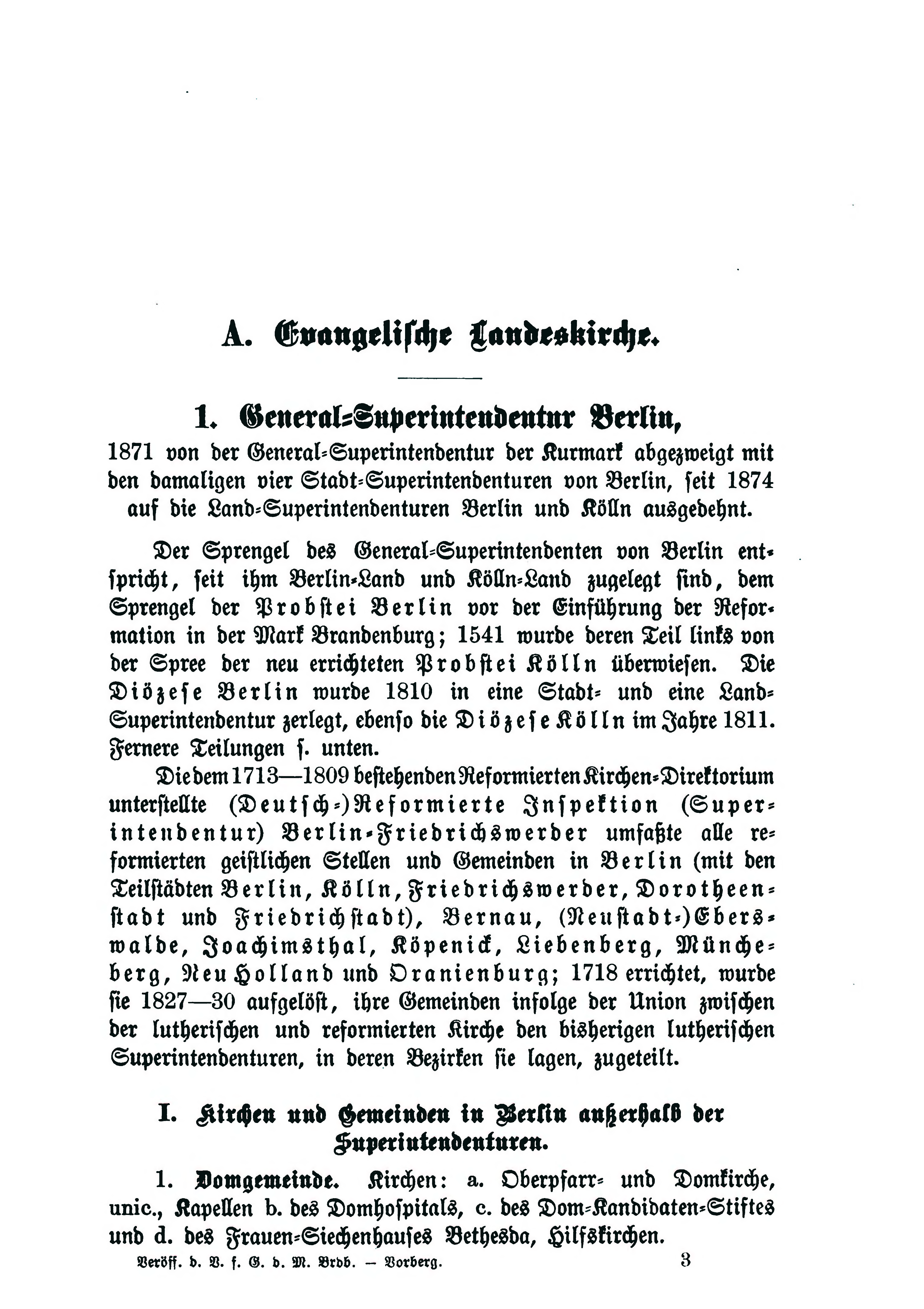 I. Kirchen und Gemeinden in Berlin außerhalb der Superintendenturen.