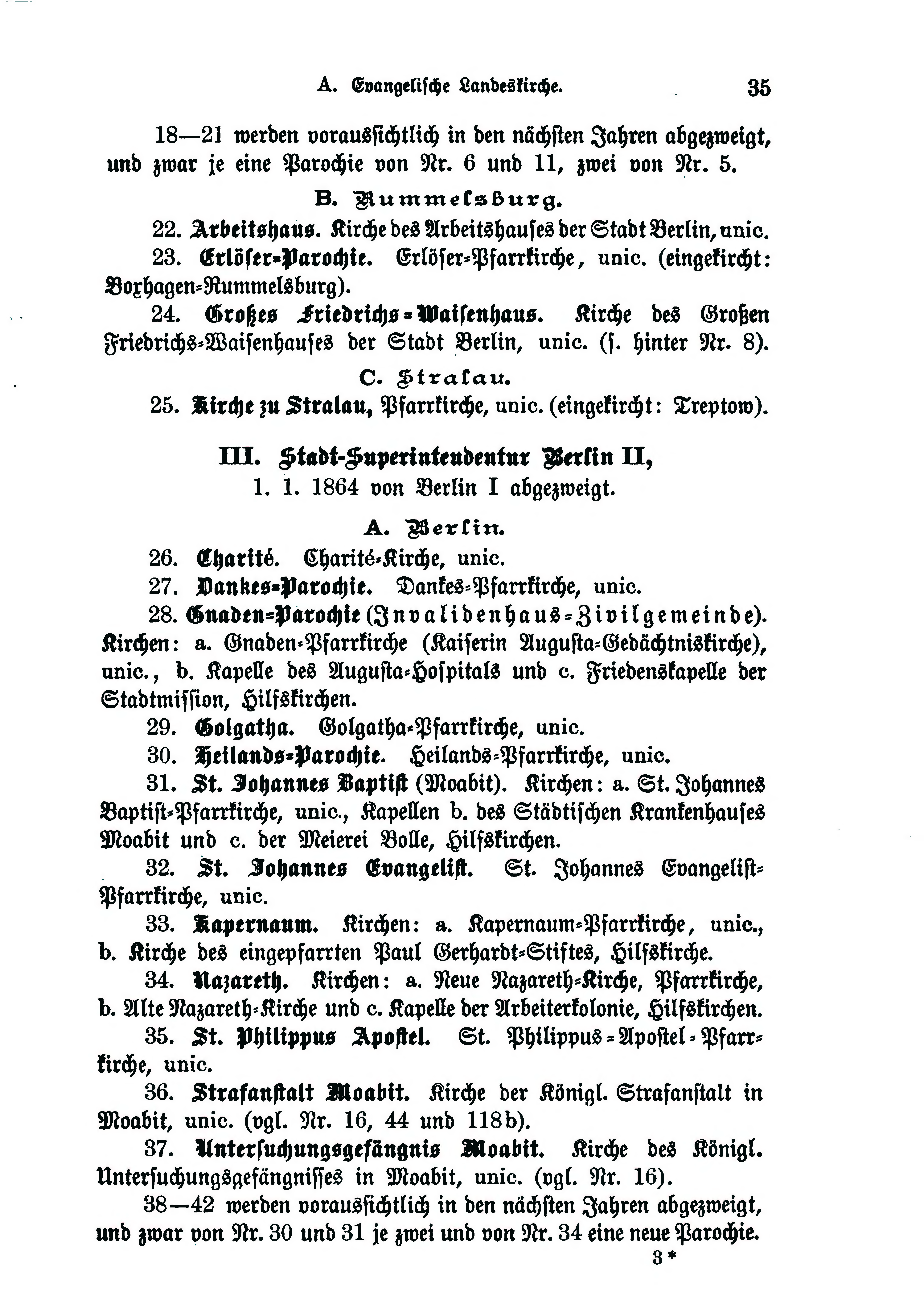 - 28. Gnaden-Parochie (Invalidenhaus - Zivilgemeinde). Kirchen: a. Gnaden-Pfarrkirche (Kaiserin Augusta-Gedächtniskirche), unic., b. Kapelle des Nugusta-Hospitals und c. Friedenskapelle der Stadtmission, Hilfskirchen.