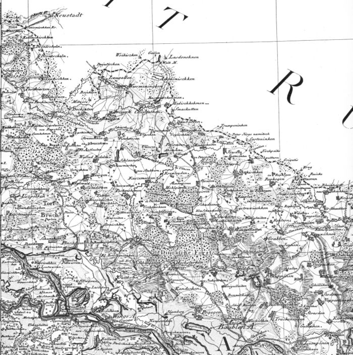 [[Bild: CoadkuthenWinge.JPG|thumb|700 px|Siehe oben '''Sohn Kawohlen''' auf der Schroetter Karte 1802, Maßstab 1: 160000]] | |||