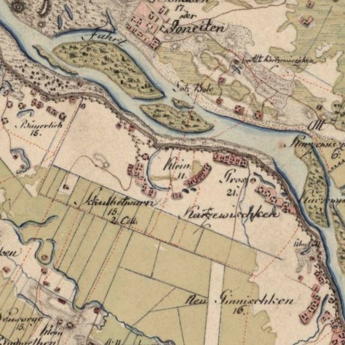 [[Bild:Klein_Karzewischken_SCHK012.jpg||thumb|none|500 px|''neu Karzewiszken'' auf der Schroetterkarte (1796-1802), Maßstab 1:50 000<br /><small>© Staatsbibliothek zu Berlin – Preußischer Kulturbesitz</small>]] | |||