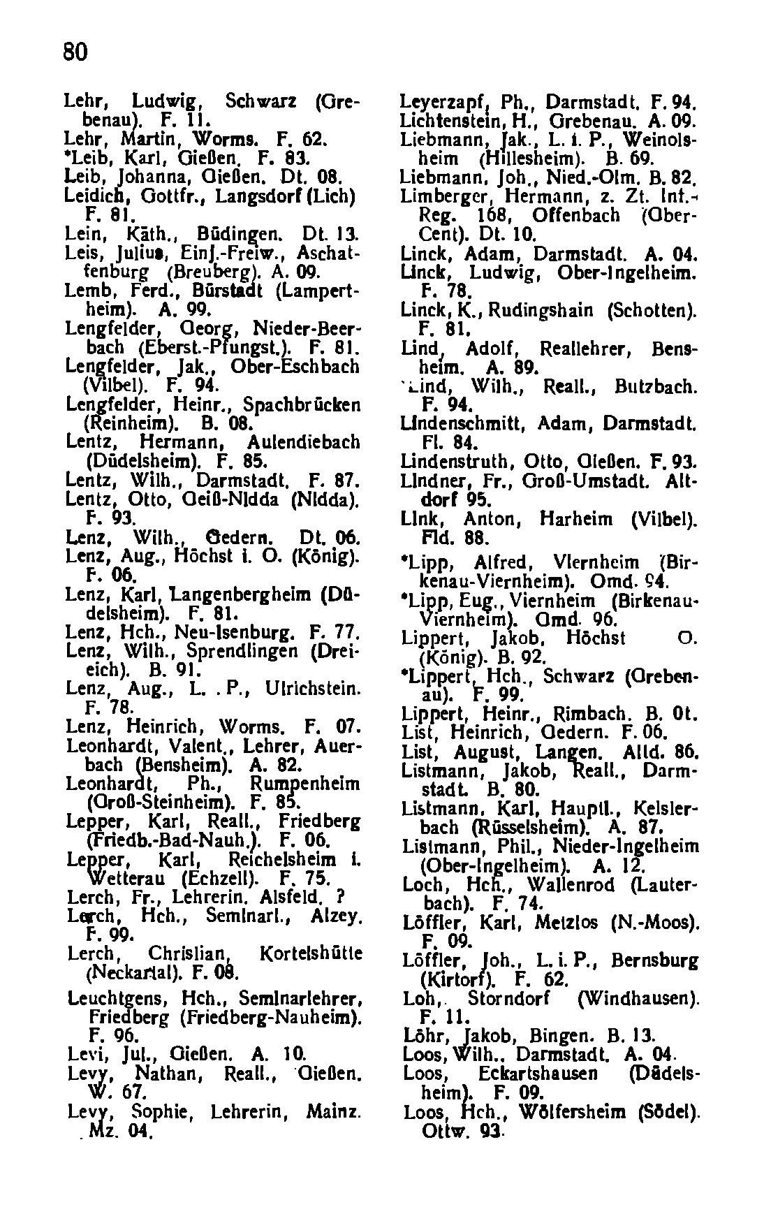 Hessen/Mitglieder des Landes-Lehrervereins (1914)/080: Unterschied zwischen den Versionen