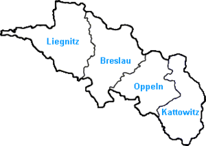 * [[Landkreis | |<center>[[Bild:Karte schlesien regbezirke 1.png|thumb|300px|Lokalisierung des Regierungsbezirkes Kattowitz innerhalb der [[Provinz Schlesien]]]] </center> | ||