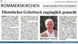 ;Sebastian Meurer schreibt am 14. Juli 2012 in der Neuss-Grevenbroicher Zeitung<br />den nebenstehenden Artikel ''"Historisches Gebetbuch zugänglich gemacht"'':Forschungsergebnisse zum Kanonikus Reinerus Splinter aus Evinghoven (1749-1831). | |||