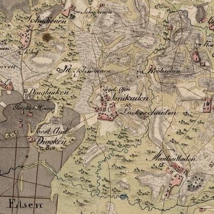 [[Bild:Jonikaten_SCHK012.jpg||thumb|left|420 px|''Jonikaiten'' auf der Schroetterkarte (1796-1802), Maßstab 1:50 000<br /><small>© Staatsbibliothek zu Berlin – Preußischer Kulturbesitz</small>]] | |||