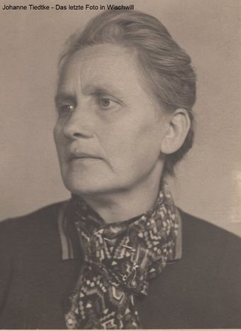 |[[image:08 Johanne Tiedtke - Das letzte Foto in Wischwill.jpg|thumb|left|340px|[http://www.ortsfamilienbuecher.de/famreport.php?ofb=memelland&ID=I352599 Johanne Tiedtke, geb. Leitner] (Foto v. 1944)]]