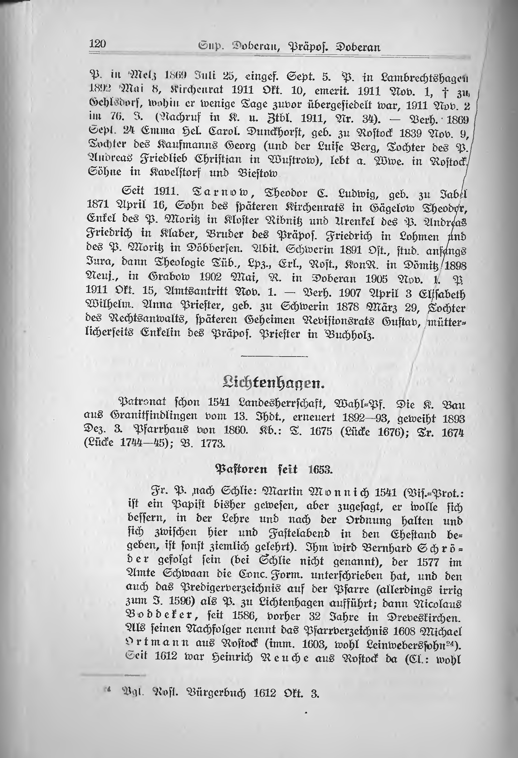 1712-1717. Schwengebeck, Johannes, geb. zu Lichtenhagen um 1673 (imm. 1694), Sohn des Vorgängers, als Substitut des Vaters gewählt 1711 Juni 4, obschon er das Tentamen noch nicht bestanden hatte, voc. von Herzog Carl Leopold, der das Amt Doberan als Apanage hatte, 1712 Jan. 29, eingef., nachdem er am 18. Nov. eraminiert war, Nov. 27, † 1717 Ende März.