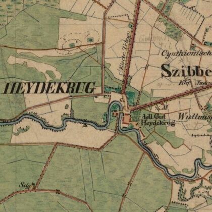 [[Bild:Heydekrug_URMTB029_1860.jpg|thumb|420px|left|Heydekrug im Preußischen Urmesstischblatt 1860<br> © Staatsbibliothek zu Berlin - Preußischer Kulturbesitz]] | |||