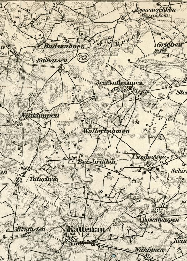 auf der Karte KDR 100 Nr.54 Stallupönen um 1893 Maßstab von 1:100.000 Durch Anklicken der Ortsnamen erreicht man die Seite des Ortes