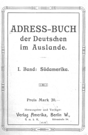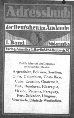 | 21:34, 29. Aug. 2005 | Auslandsadressbuch 2.png (Datei) | 99 KB | Adressbuch der Deutschen in Südamerika, 1934 - Deckblatt Rückseite | 1 | |