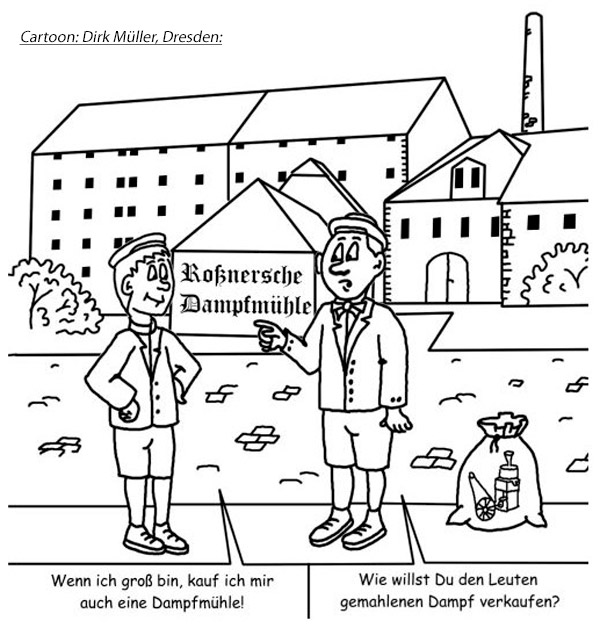 | 18:38, 19. Dez. 2017 | Rossnersche-Dampdmuehle.jpg (Datei) | 87 KB | == Beschreibung == {{Information |Beschreibung = Cartoon Roßnersche Dampfmühle |Quelle = |Urheber = Karikaturist Dirk Müller, Dresden |Datum = 2017 |Genehmigung = telefonisch 19.12.2017 |Andere_Versionen = |Anmerkungen = }} == Lizenz: == {{Copyri | 1 | |