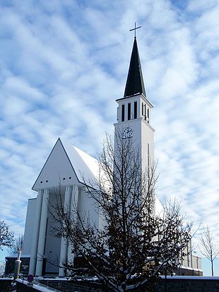 Bereits 1988 wurde mit den Planungen für den Bau einer neuen Kirche begonnen. Nur ein Jahr später wurden Vorbereitungsarbeiten an der historischen Stätte durchgeführt. 1990 konnte mit den Bauarbeiten angefangen werden. 1992 wurde die Kirche fertiggestellt und mit den Weihnachtsfeierlichkeiten eingeweiht. Entstanden ist ein postmoderner Bau mit einem seitlich gestellten Kirchturm mit steiler Spitze. Ein markantes Wahrzeichen sind zwei hohe Säulen vor der Giebelfassade des Kirchenschiffs, die zu beiden Seiten einer angedeutenden, halbrunden Apsis stehen. [4]
