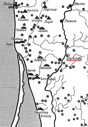 6. nach Mortensen, H. u. G.: Die Besiedlung des nördlichen Ostpreußen bis zum Beginn des 17.Jh Teil I: Die preußisch-deutsche Siedlung am Westrand der Großen Wildnis um 1400, Teil II: Die Wildnis im östlichen Preußen, ihr Zustand um 1400 und ihre frühere Besiedlung, in Deutschland und der Osten Band 8, Leipzig 1938, II.S.115