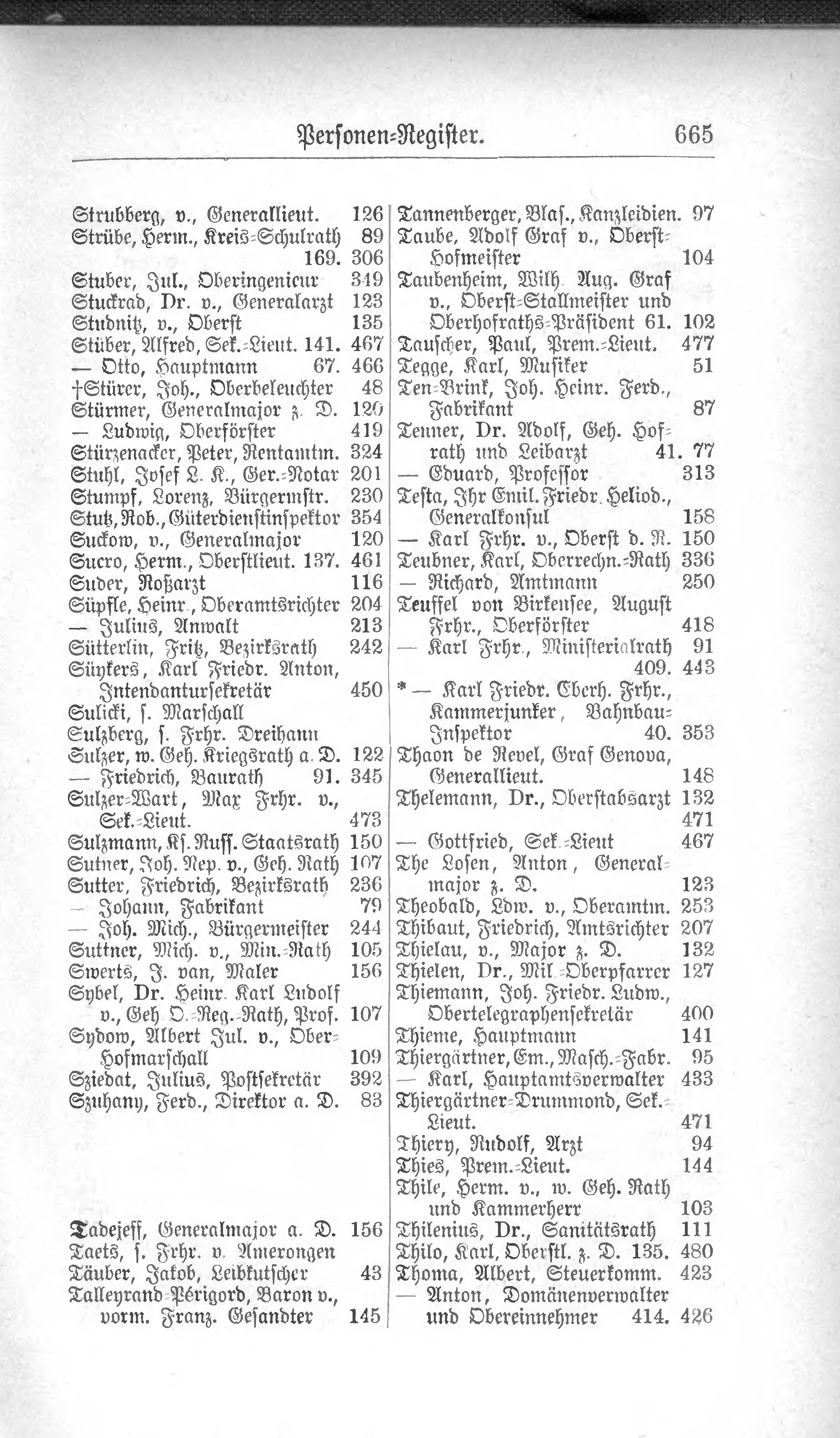 | Sulzer, w. Geh. Kriegsrath a. D.