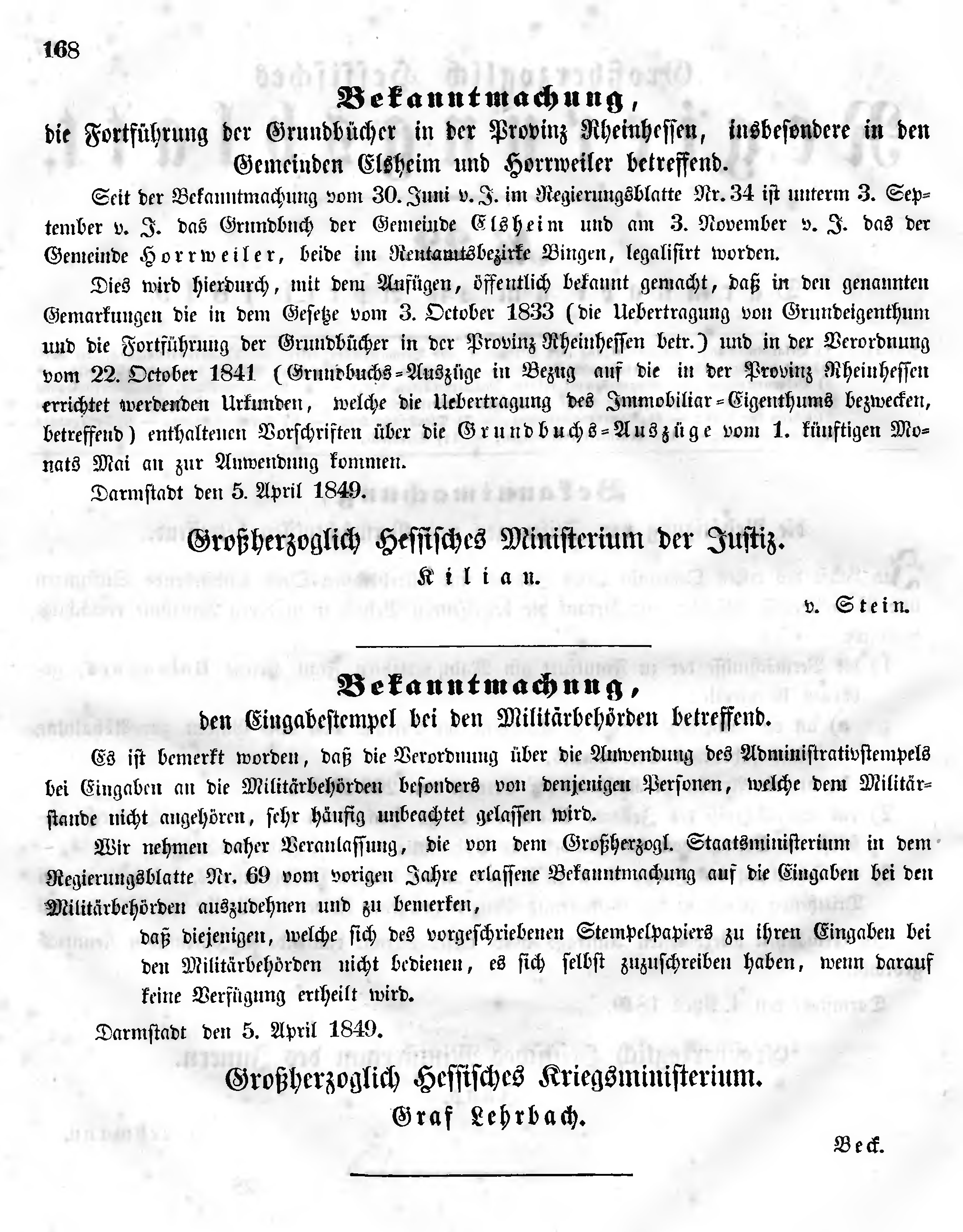Großherzogtum Hessen/Regierungsblatt 1849/168