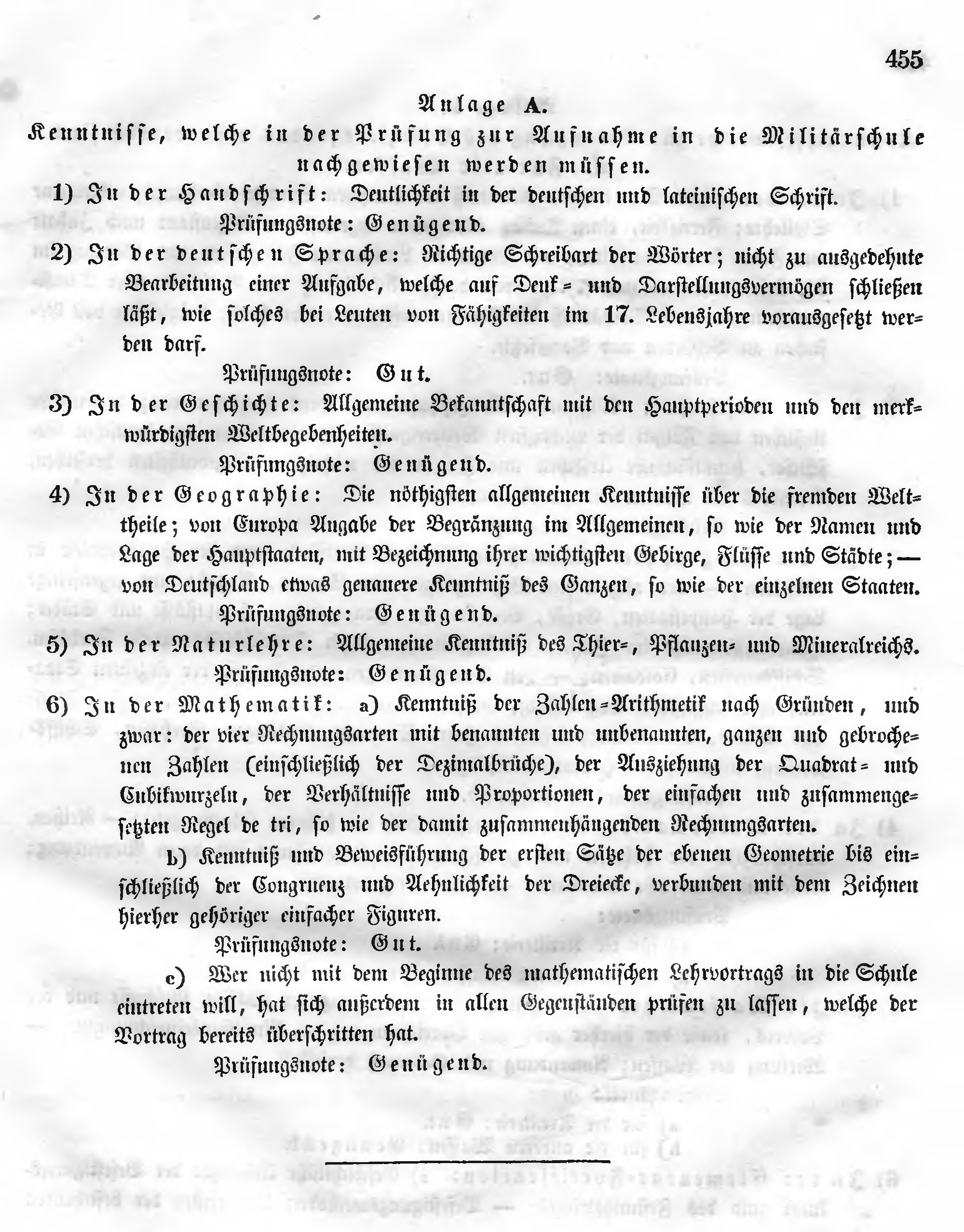 Kenntnisse, welche in der Prüfung zur Aufnahme in die Militärschule nachgewiesen werden müssen.