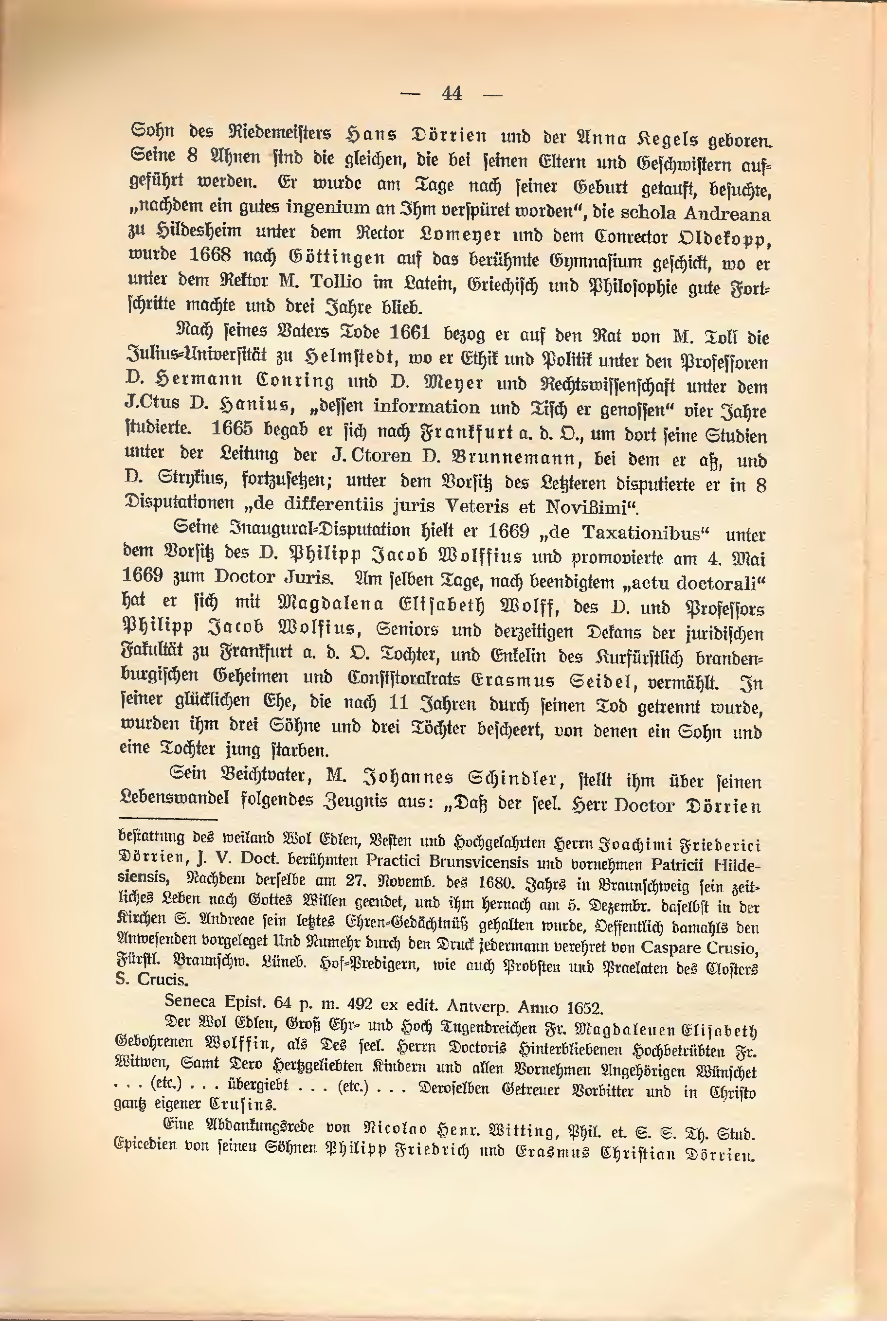 Sohn des Riedemeisters Hans Dörrien und der Anna Kegels geboren. Seine 8 Ahnen sind die gleichen, die bei seinen Eltern und Geschwistern aufgeführt werden. Er wurde am Tage nach seiner Geburt getauft, besuchte, „nachdem ein gutes ingenium an Ihm verspüret worden“, die schola Andreana zu Hildesheim unter dem Rector Lomeyer und dem Conrector Oldekopp, wurde 1668 nach Göttingen auf das berühmte Gymnasium geschickt, wo er unter dem Rektor M. Tollio im Latein, Griechisch und Philosphie gute Fortschritte machte und drei Jahre blieb.