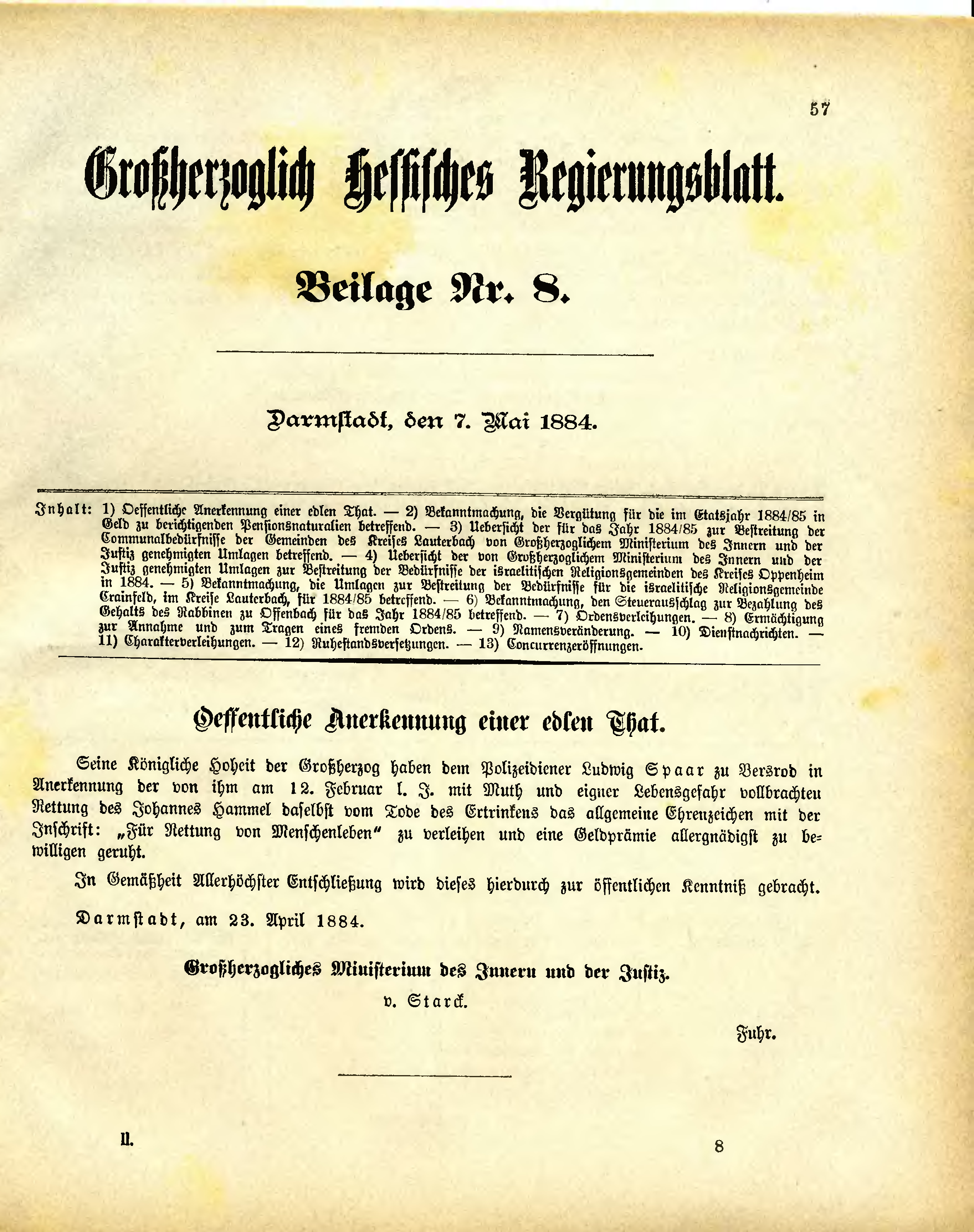 | Großherzogtum Hessen/Regierungsblatt 1884 | |