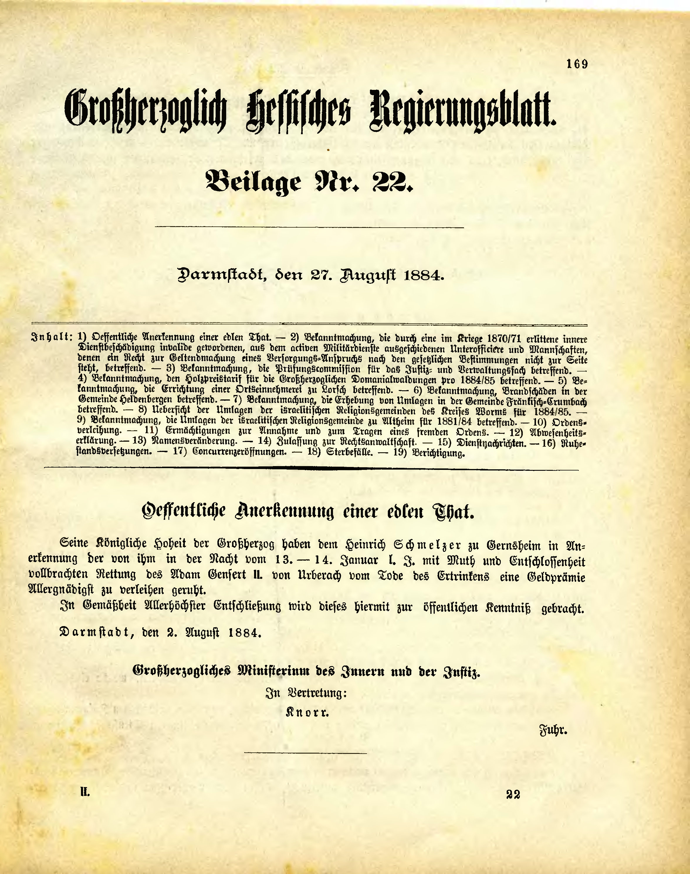 < Großherzogtum Hessen‎ • Regierungsblatt 1884