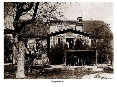 Meine Eltern Ida und Gustav Gennies, waren nämlich in Rumpischken Platzwart und wir haben von ca. 1930 bis zum bitteren Ende 1944 in dem hinter der Fliegerhalle angebauten Wohnhaus gewohnt. Von unserem Garten aus konnte ich, wenn ich auf die Regentonne kletterte, durch die großen Werkstattfenster schon mal beobachten, was die Flugzeugbastler da machten und manchmal hat mich auch jemand mit reingenommen. Auch in der Halle durfte ich später schon mal auf den Sitz des Zöglings und wurde sogar angeschnallt.
